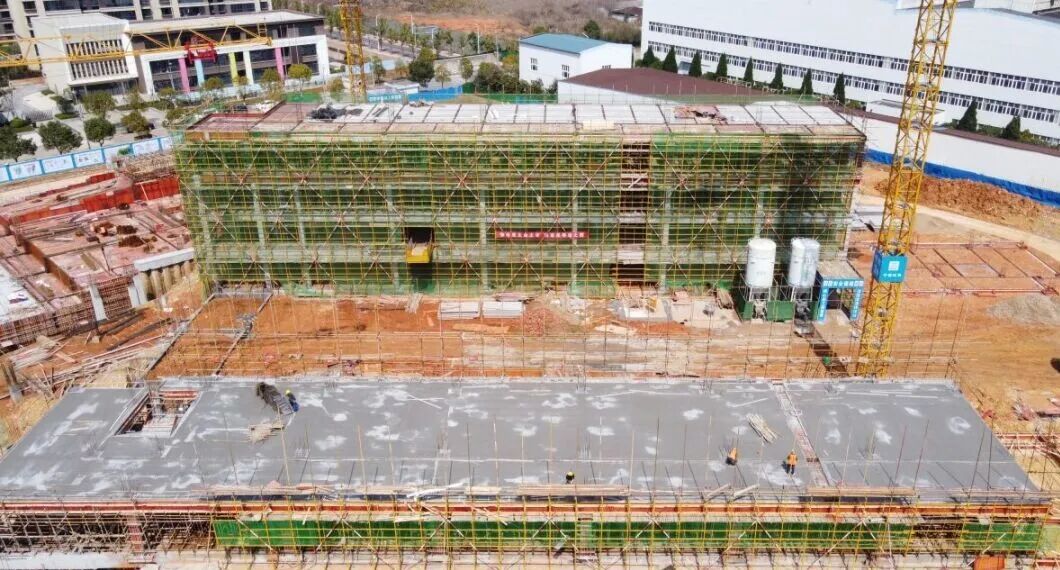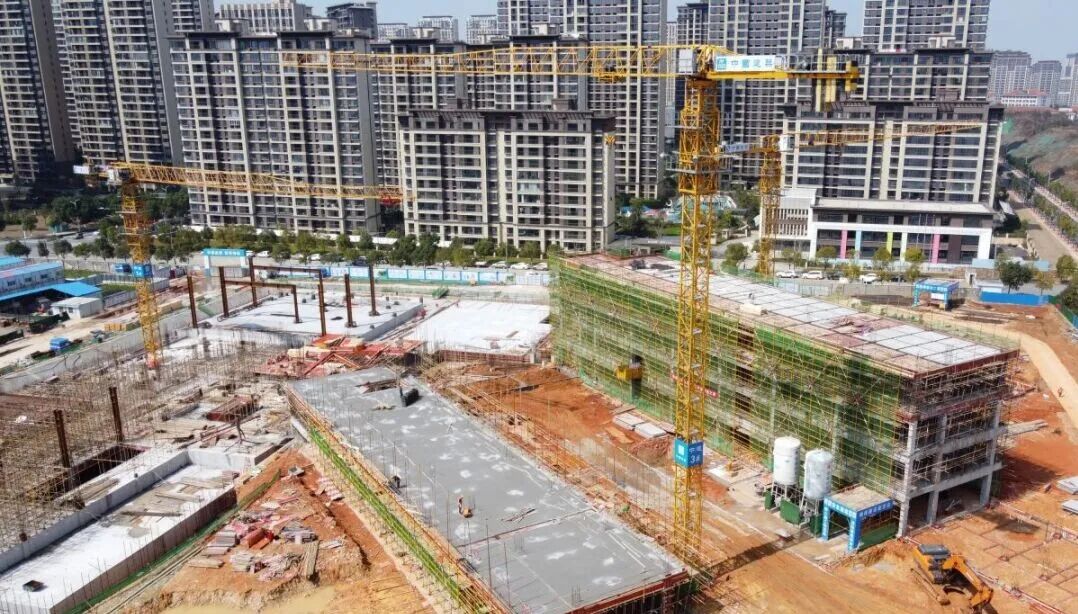 3月3日,位于八里湖新区财富大道与尚德路交界处的九江小学九龙山校区项目正加紧施工,目前一栋教学楼已完成主体结构封顶,项目各作业面全面铺开、有序推进。