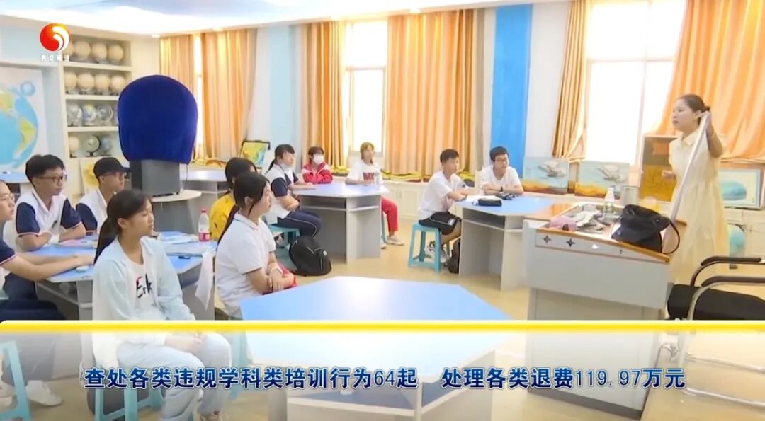 2023年,1.6万余名学生免费接受了游泳普及教育,17659名中小学生参加“红心护夏”暑期校内免费托管服务,查处各类违规学科类培训行为64起,处理各类退费119.97万元。