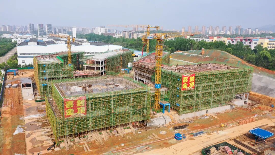 九江小学九龙山校区项目是2024年九江市十大民生实事项目之一,位于八里湖新区财富大道与尚德路交界处,2023年11月开工,项目总建筑面积约35000m²,主要建设教学楼及辅助用房等,新校区拟设48个班,可容纳小学生1920人。如今,新校区的主体结构已全面封顶,计划于2024年8月15日竣工,2024年秋季开学投入使用。