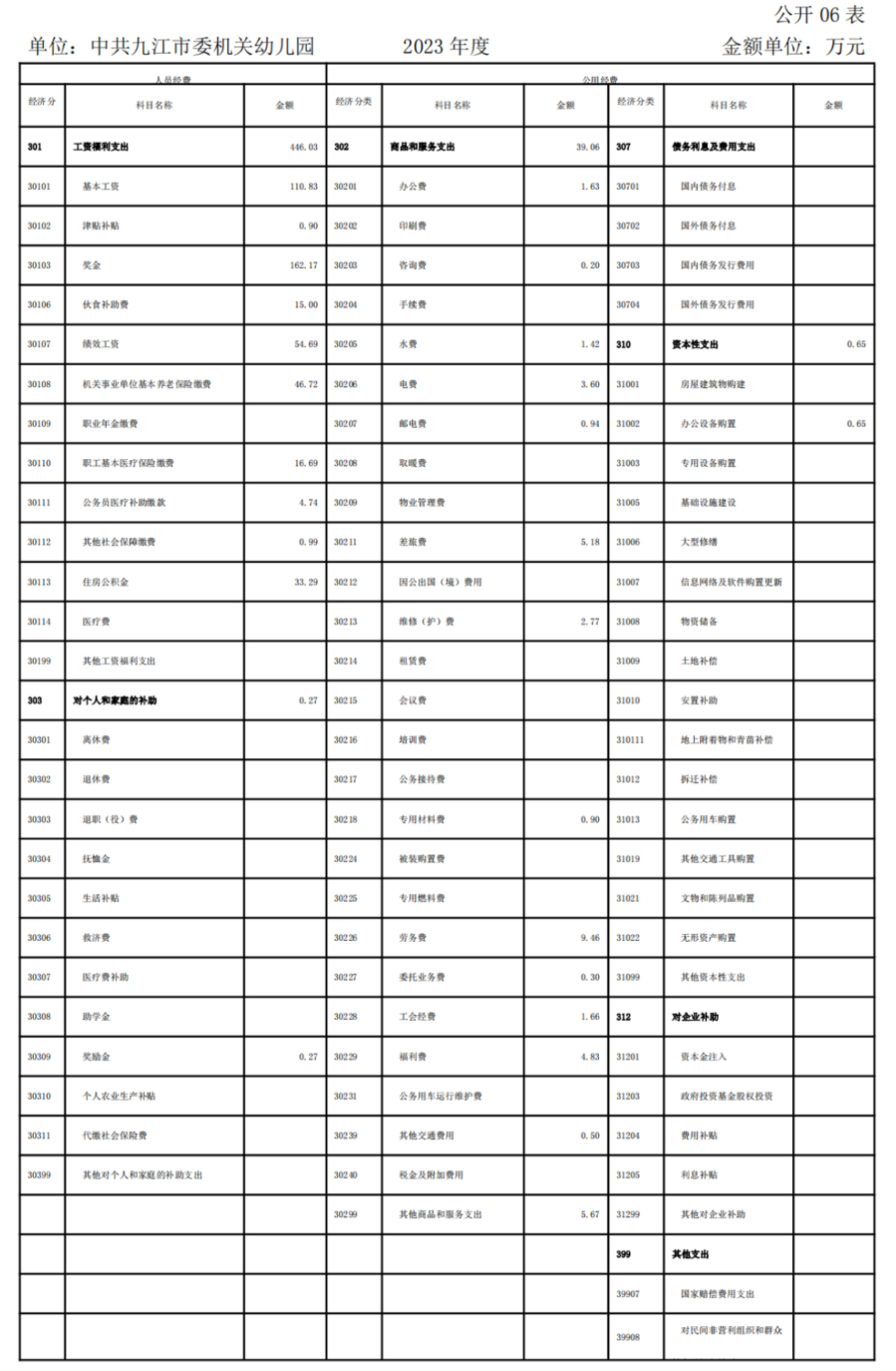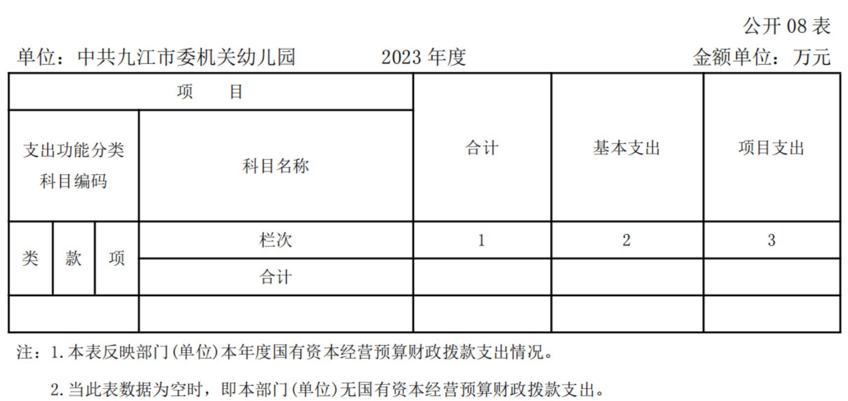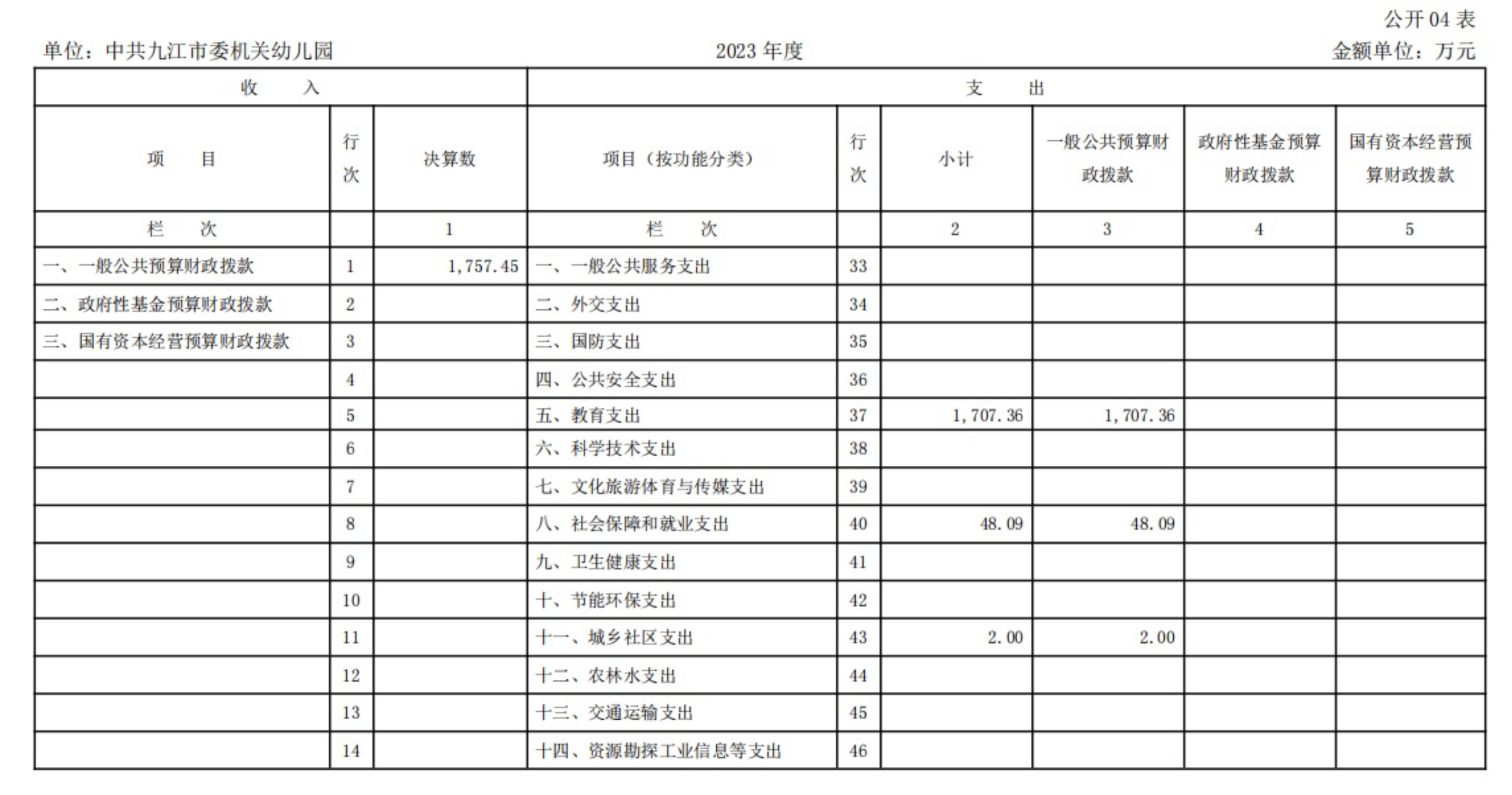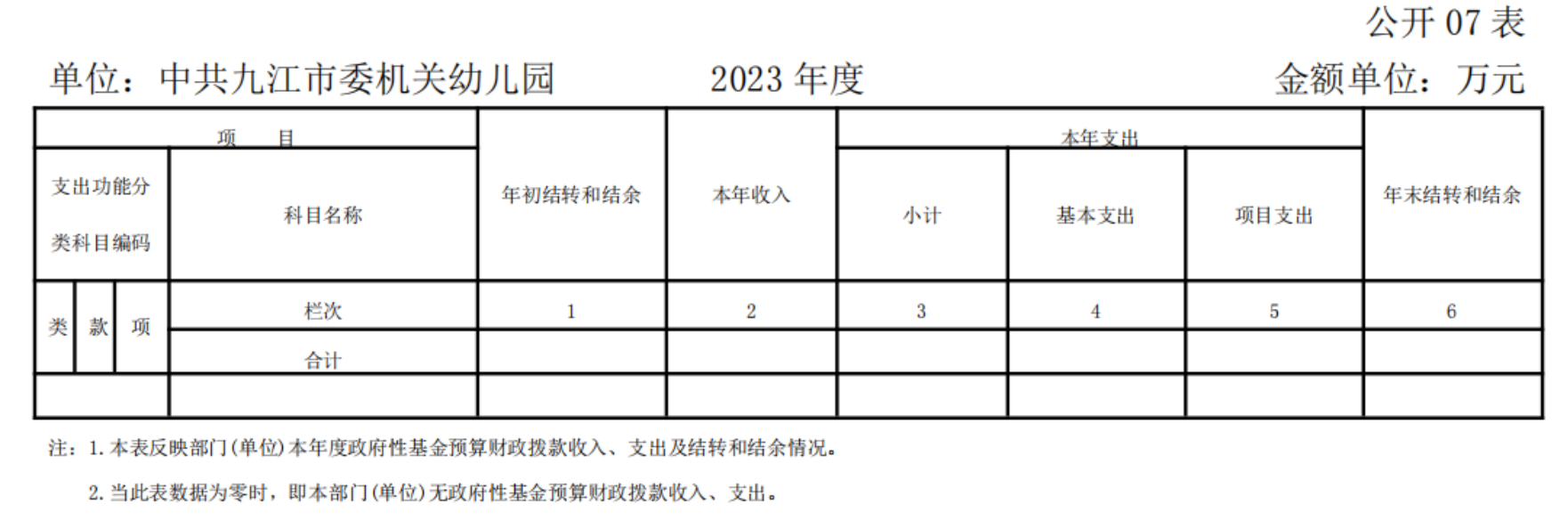 中共九江市委机关幼儿园2023年度单位决算