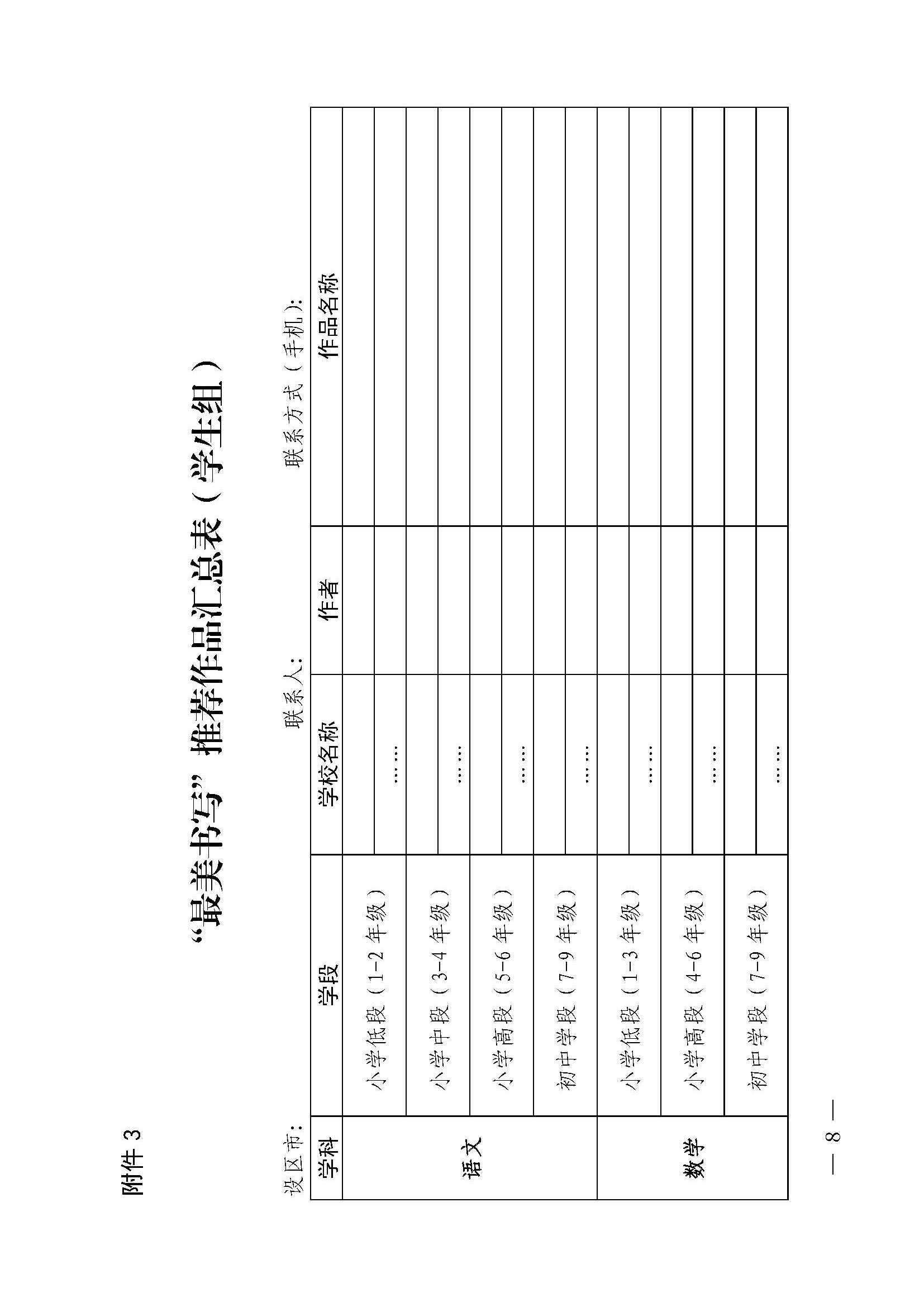 注:1. 各地各校提交的师生组作品必须覆盖文件所要求的全学科、全学段;