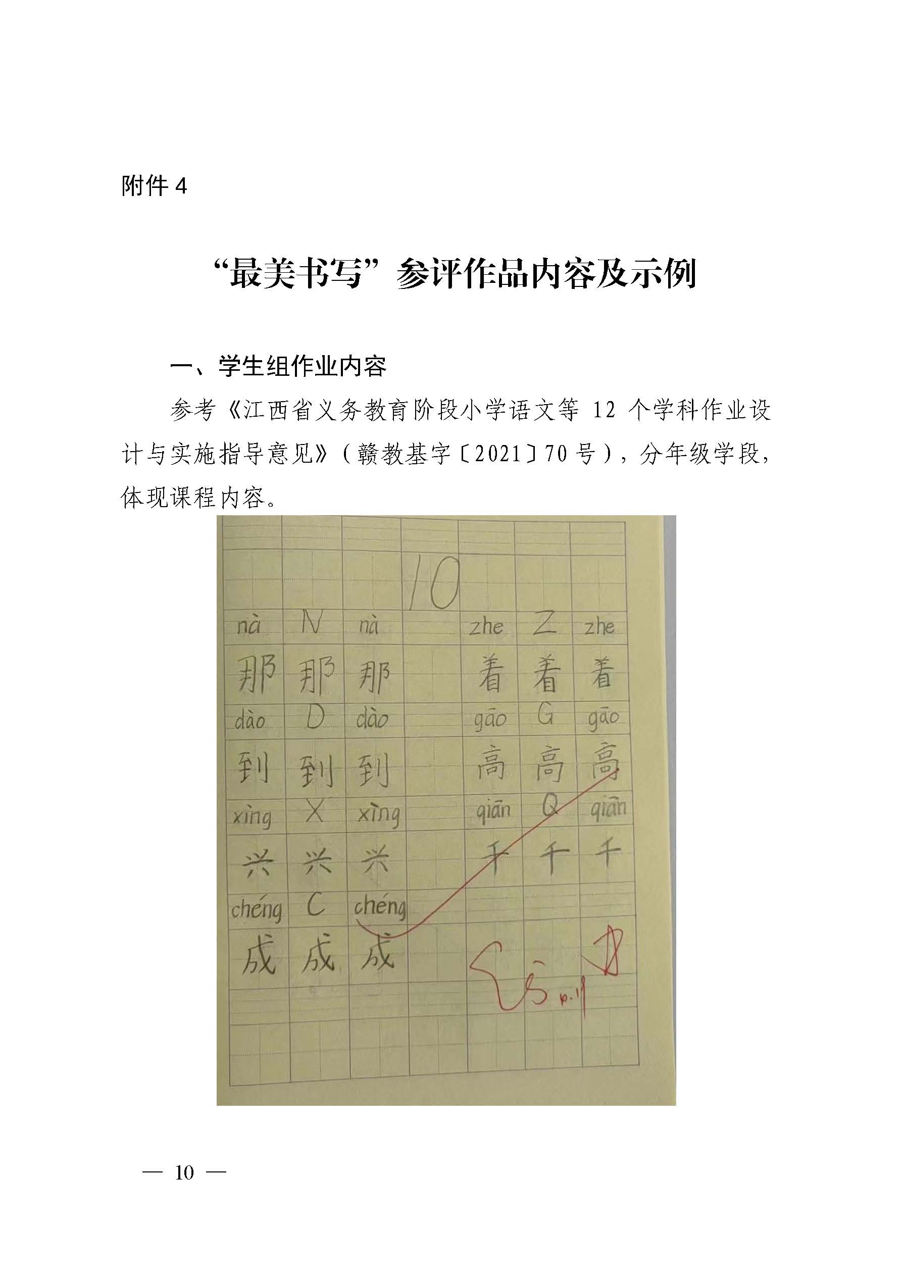 4.“最美书写”参评作品内容及示例