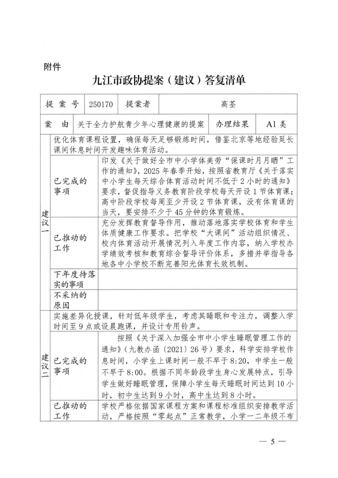 九教案字(2025)6号九江市教育局关于市政协十六届五次会议 第250170号提案答复的函