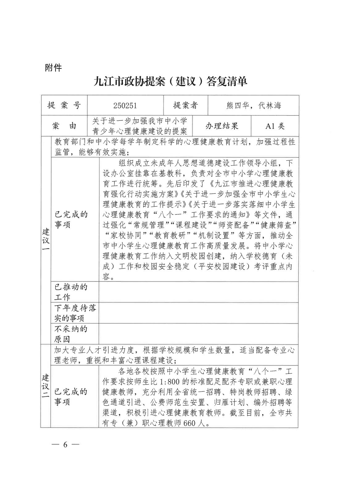 九教案字(2025)10号九江市教育局关于市政协十六届五次会议 第250251号提案答复的函