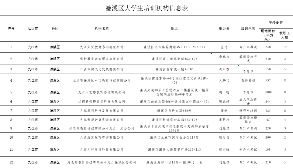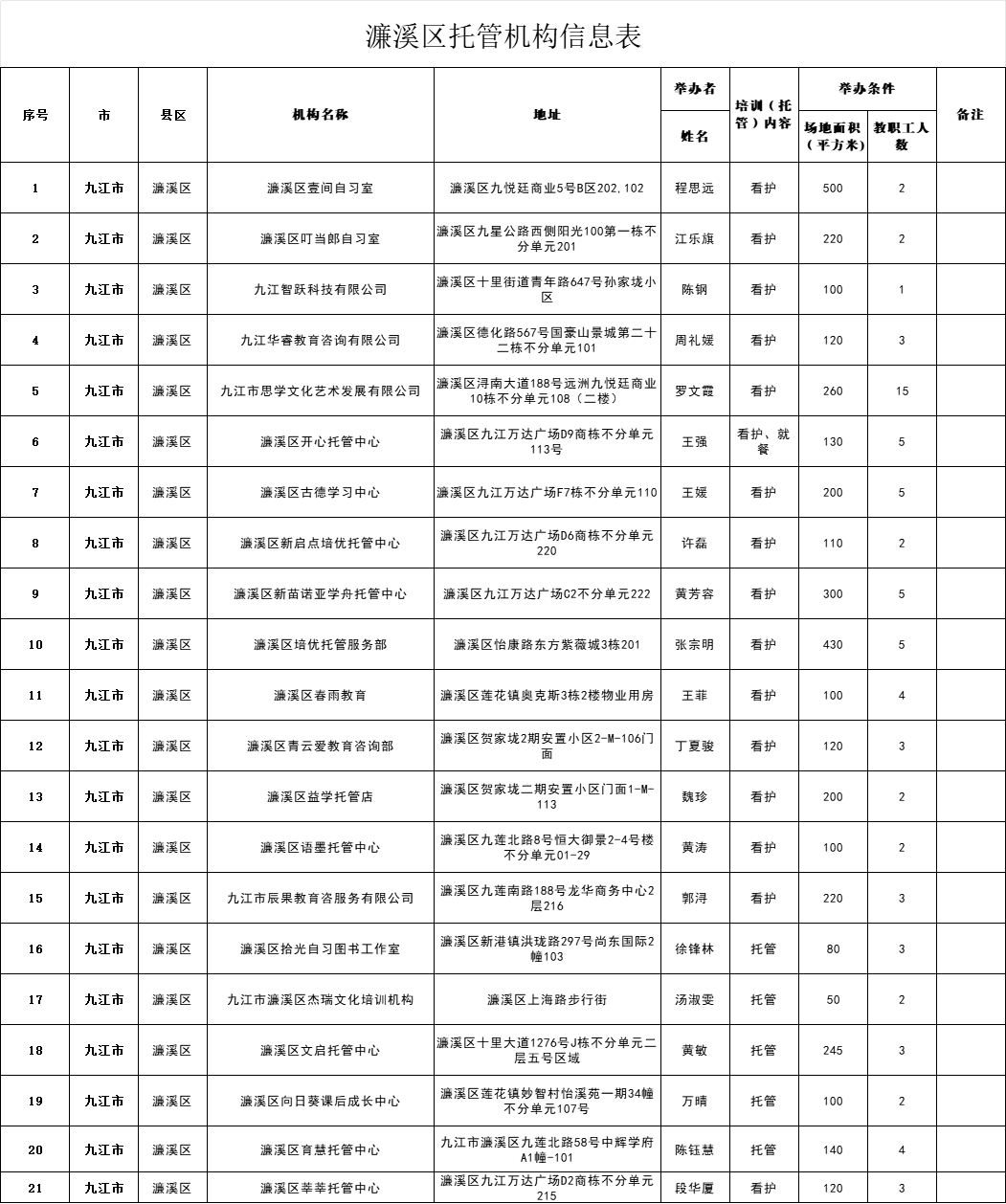 根据省教育厅等14部门关于印发《江西省大学生培训机构检查细则(试行)》《江西省中小学生校外托管机构检查细则(试行)》的通知要求,结合濂溪区行政审批局和濂溪区市场监督管理局审批的营业执照,现将濂溪区2025年大学生培训机构和中小学生托管机构“合规名单”向社会公布。
