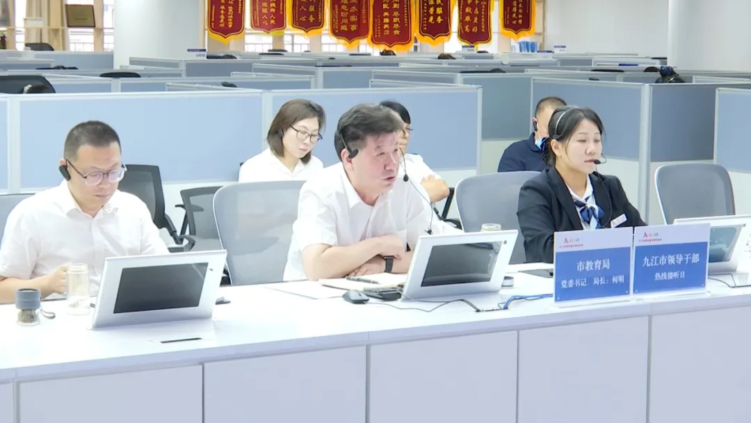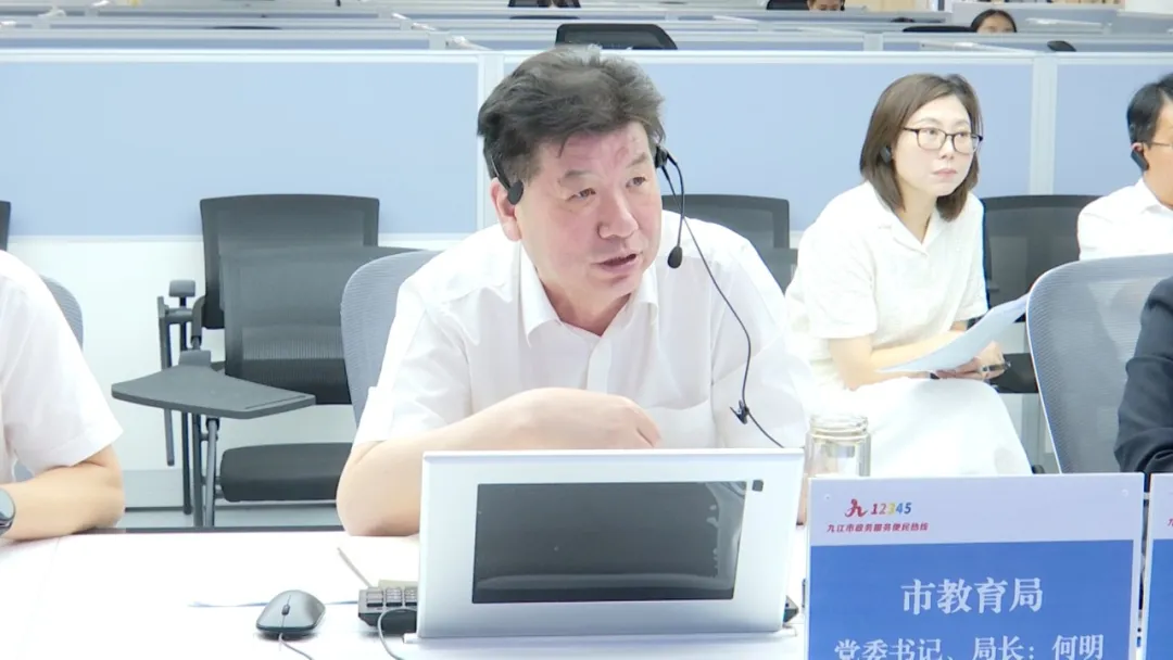 7月23日,市教育局党委书记、局长何明带队走进九江市12345政务服务便民热线中心,现场接听群众来电,倾听民生诉求。