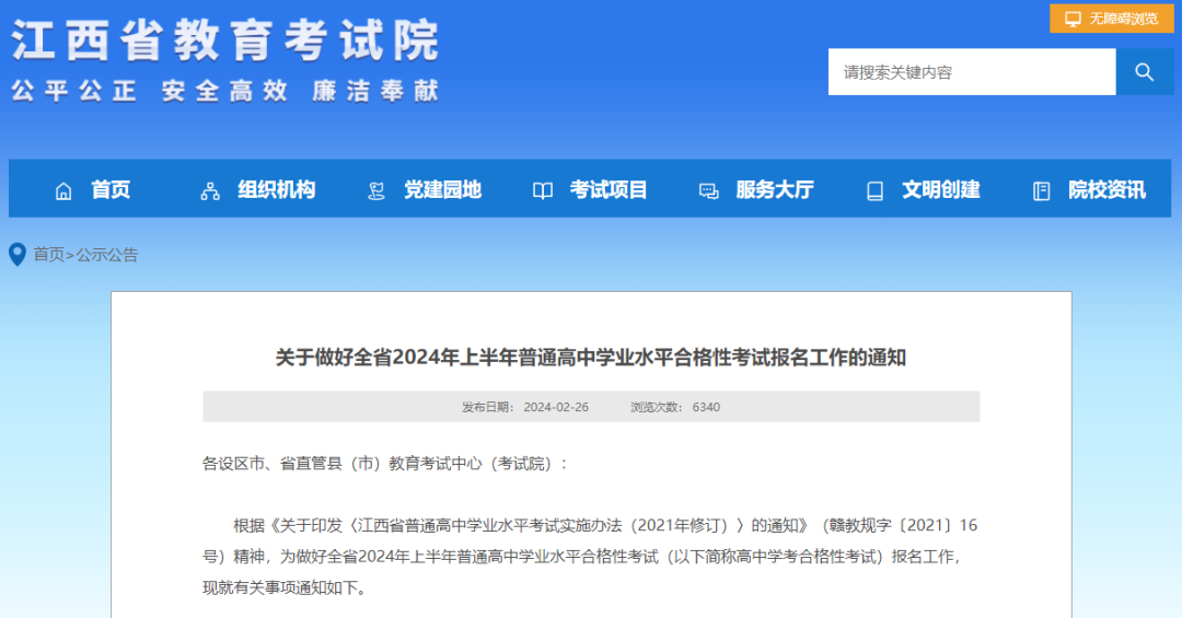 近日,江西省教育考试院发布通知,全省2024年上半年普通高中学业水平合格性考试,报名时间为3月4日-3月20日。