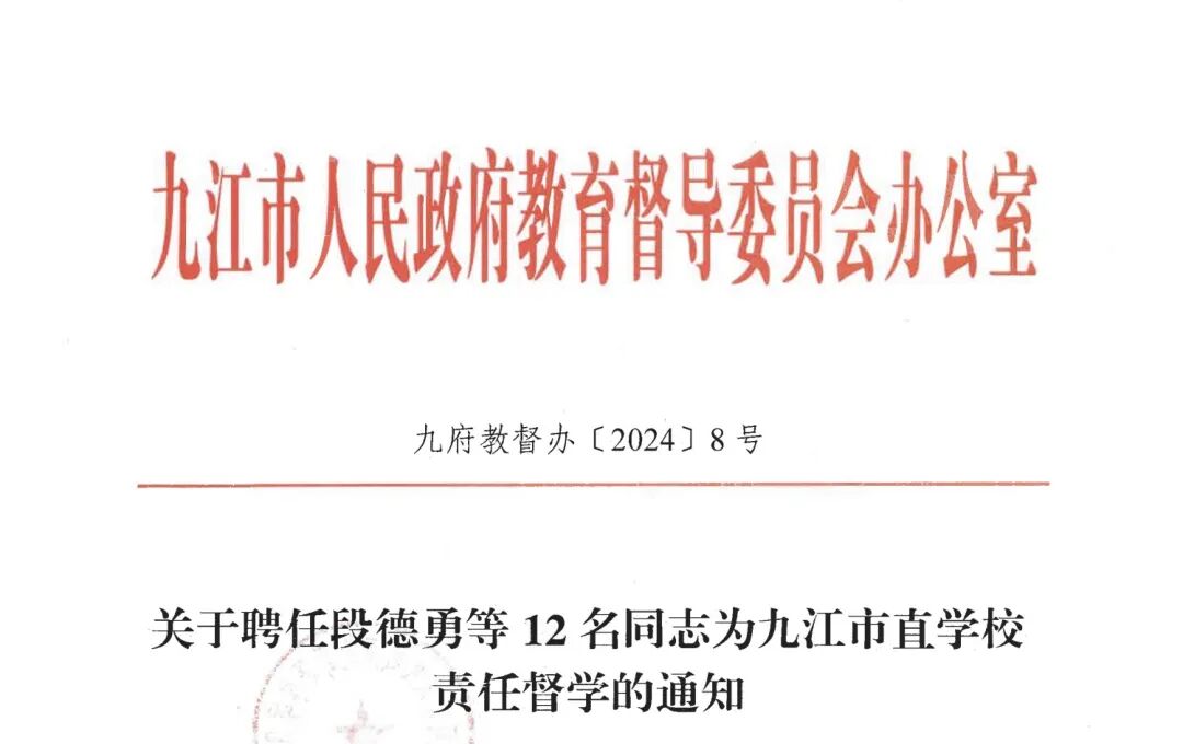权威发布!九江市人民政府教育督导委员会办公室聘任12名九江市直学校责任督学