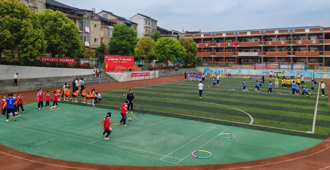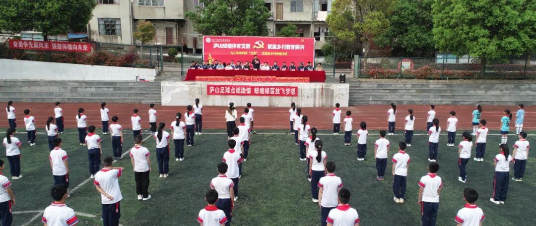 为了深入学习贯彻习近平新时代中国特色社会主义思想,落实“立德树人”教育根本任务,实施“五育”并举,推动融合育人,补齐乡村教育“五育”短板,提升乡村教育教学质量,推进乡村教育振兴工作。4月1日,九江市教育科学研究所带领体育支教小组一行20余人走进庐山市蛟塘中心小学开展“五育”支教进乡村党建系列活动之“足球嘉年华”活动。