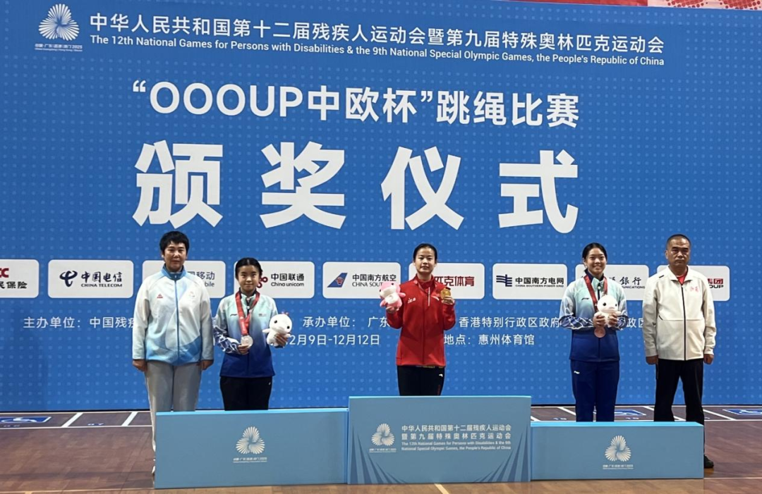 12月9日,全国第十二届残疾人运动会暨第九届特殊奥林匹克运动会“OOOUP中欧杯”跳绳(大众)项目在惠州体育馆正式开赛。九江市特殊教育学校派出的5人参赛队伍表现亮眼,其中,18岁小将许程丽在听力组女子个人计数赛中脱颖而出,代表江西省荣获全国金牌。