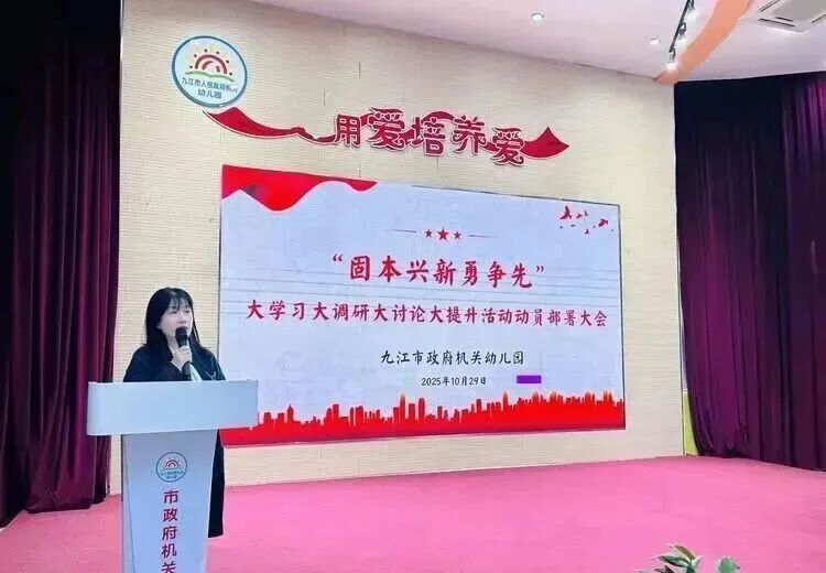 10月29日,九江市政府机关幼儿园召开动员部署会,部署开展“固本兴新勇争先”大学习大调研大讨论大提升活动。
