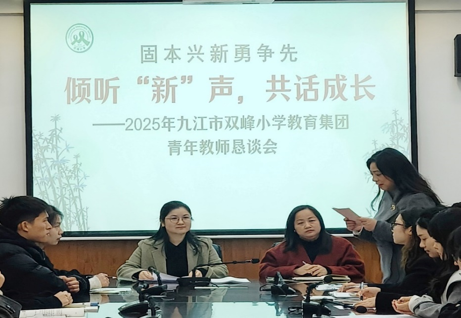 为助力新教师快速适应岗位、提升教育教学能力,破解成长困惑,凝聚发展共识,近日,九江市双峰小学教育集团先后在双峰小学庾亮校区、濂溪校区和九江八里湖双峰小学,召开“倾听‘新’声,共话成长”青年教师恳谈会。