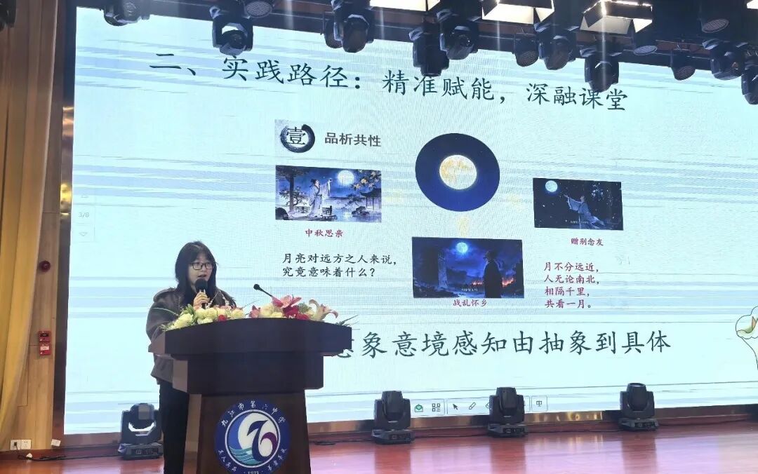 本次活动以《古诗词意象鉴赏与情感解读》为题,共设课例展示、AI赋能研讨、协同备课分享三大环节,来自联盟校的六位教师聚焦意象鉴赏与情感解读,呈现了精彩的教学示范,并围绕智能工具在语文教学中的应用展开交流,探索技术赋能教学的新路径,同时还分享协同备课过程,共研教学设计与重难点突破。