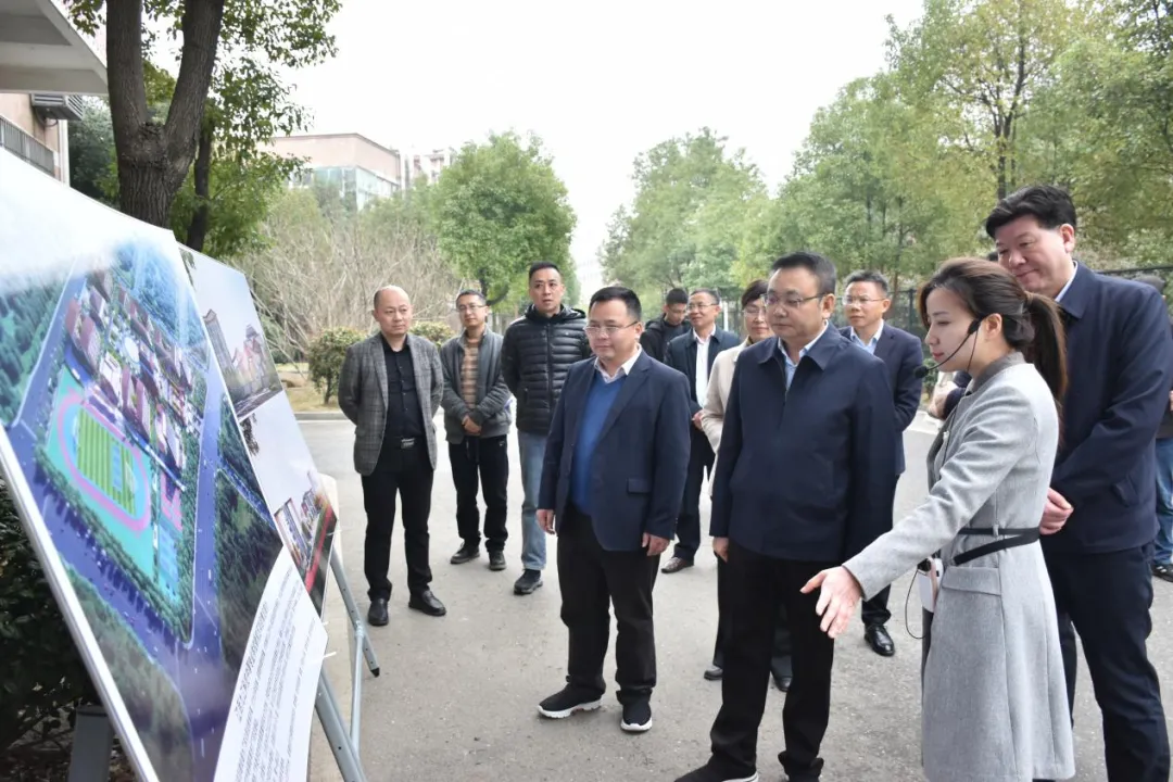 九江科技中专党委书记陈剑华、校长张小华汇报了学校高质量发展、八里湖新校区建设、建设高职院校、产教融合等情况。