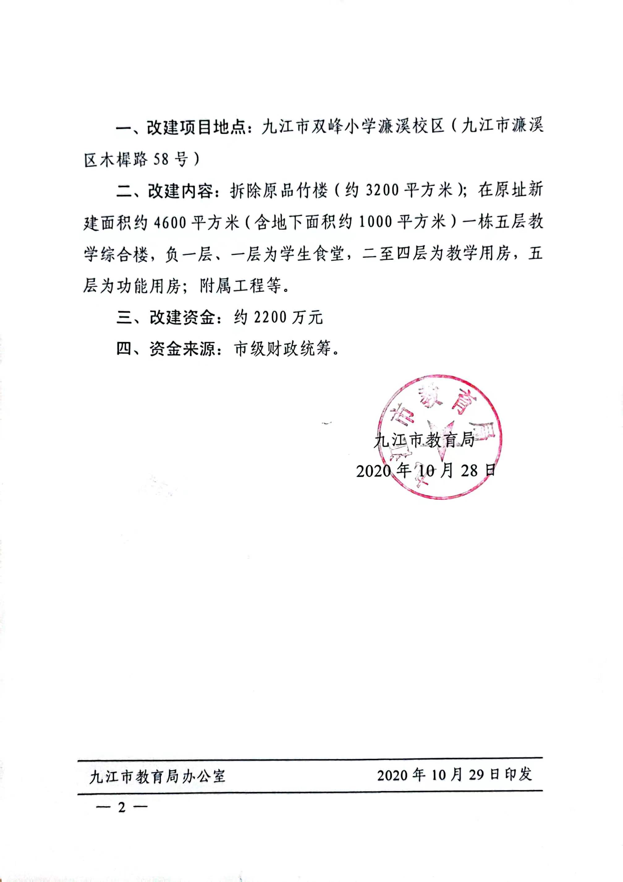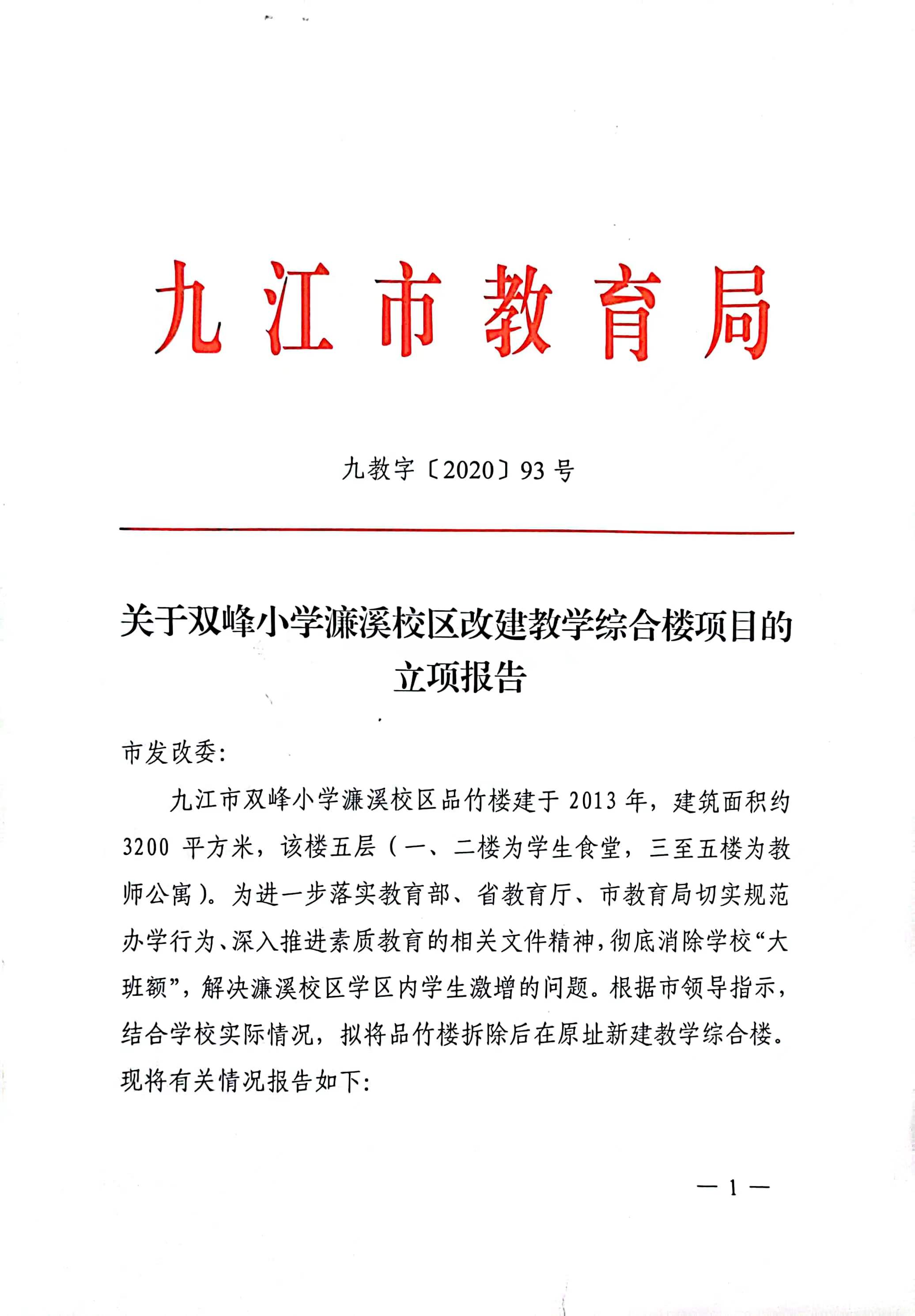 关于双峰小学濂溪校区改建教学综合楼项目的立项报告