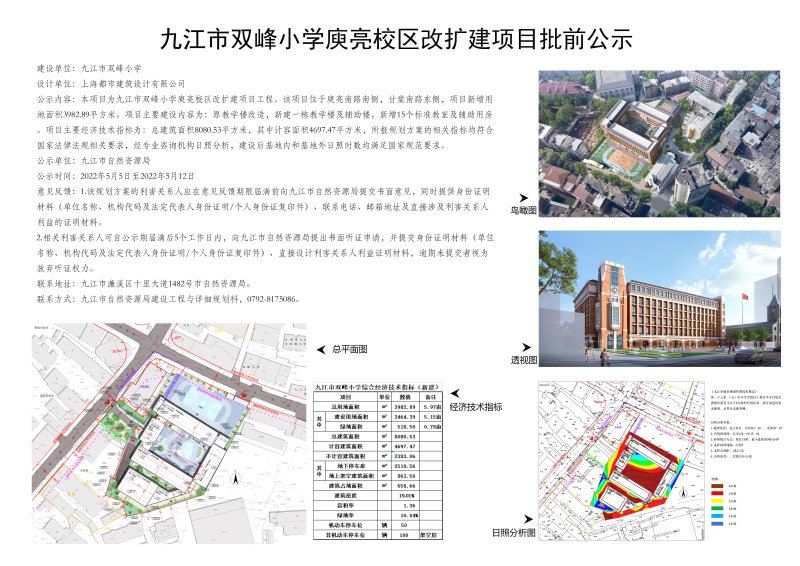 九江市双峰小学庾亮校区改扩建项目批前公示
