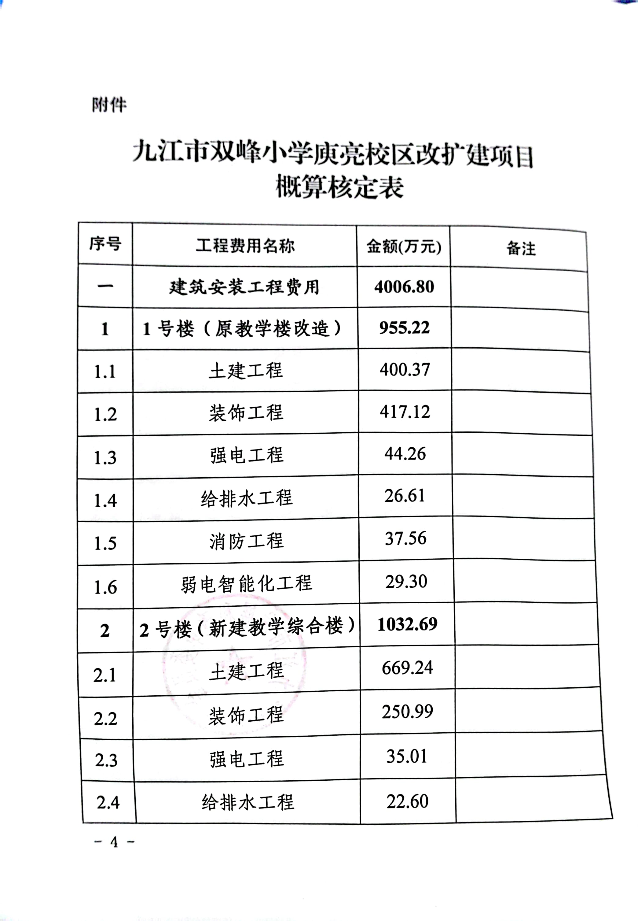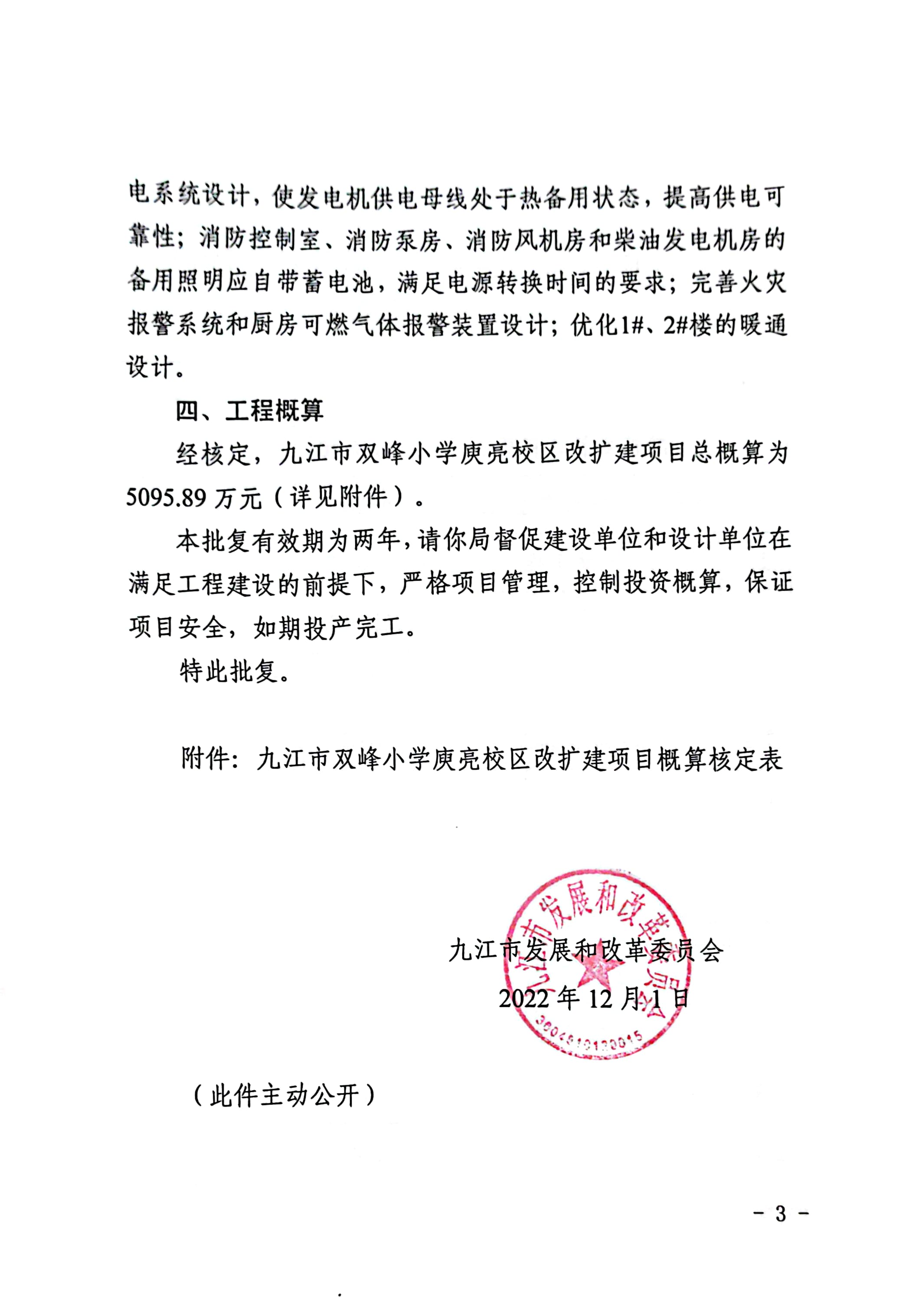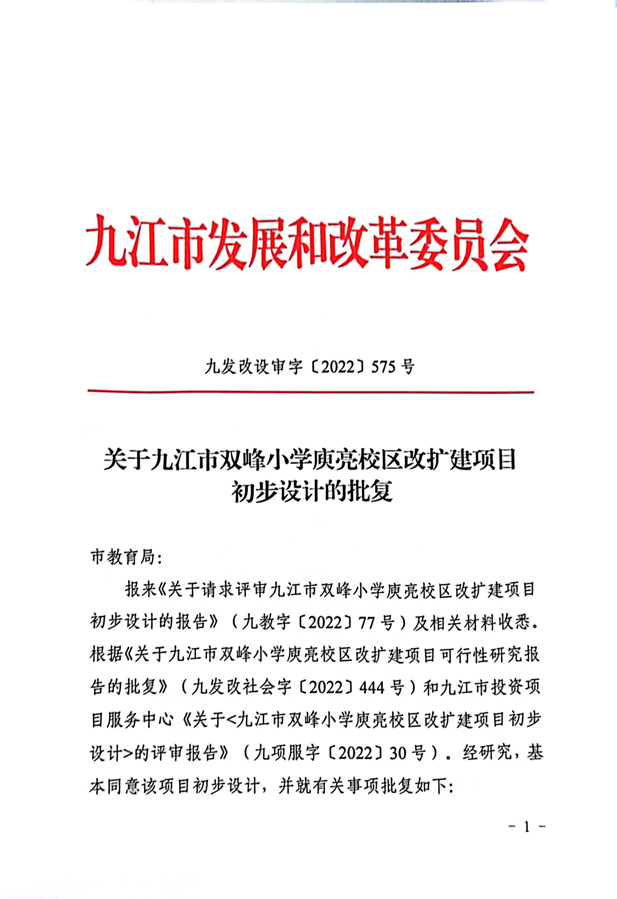 关于九江市双峰小学庾亮校区改扩建项目初步设计的批复