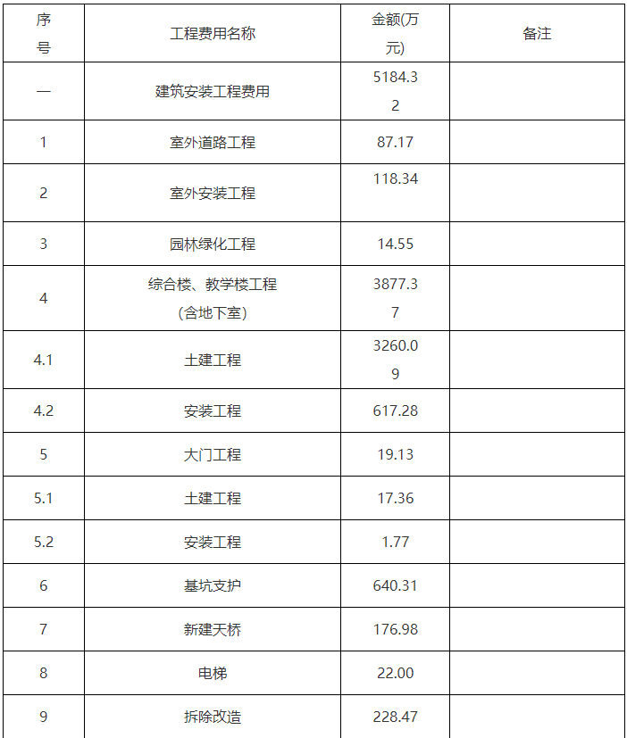 附件:九江外国语学校庾亮校区改扩建工程概算核定表