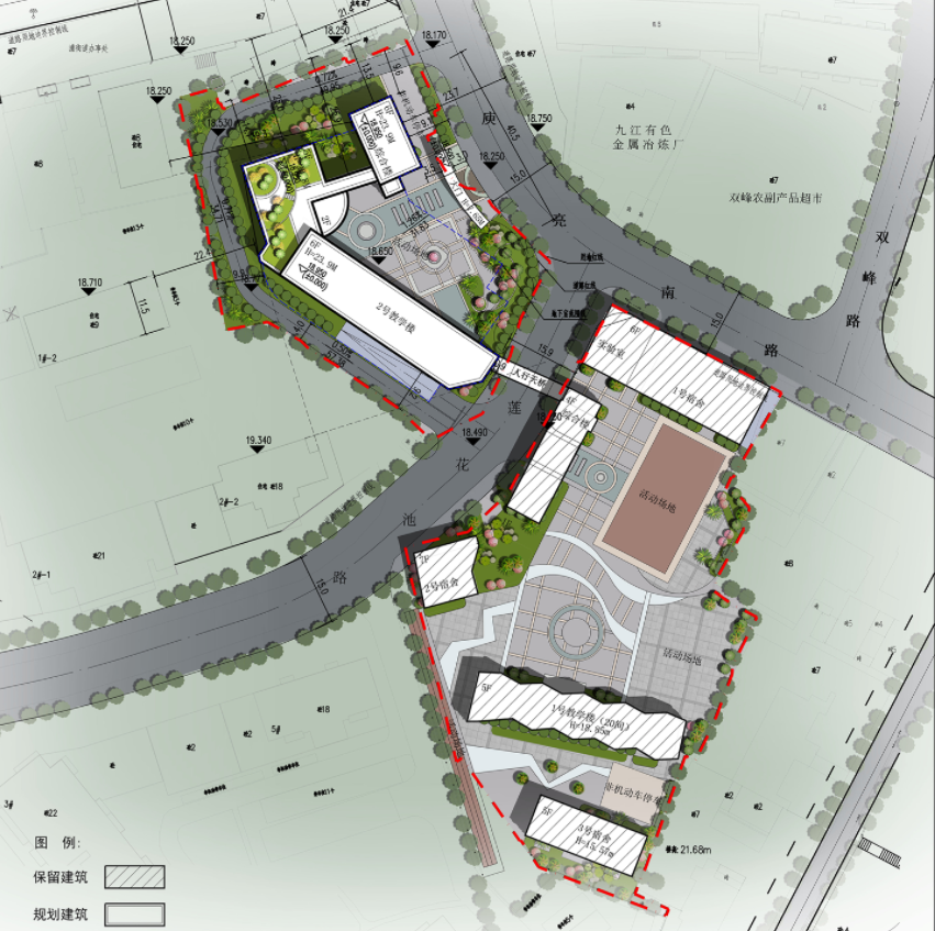 九江外国语学校庾亮校区改扩建项目位于庾亮南路南侧,莲花池路东侧。