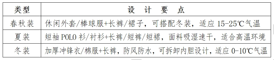 建议单套成本控制在合理零售价区间(春秋款≤105元/套,夏款≤80元/套,冬款≤180元/套,具体见附件2中“成本控制”)。