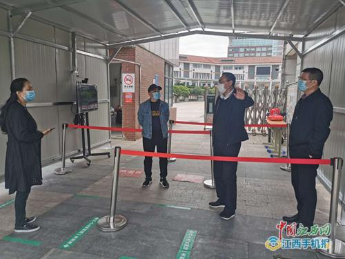 4月14日,市教育局党委书记、局长熊颖一行,到九江一中八里湖校区、九江外国语学校、九江六中检查指导学校防疫和复学工作。