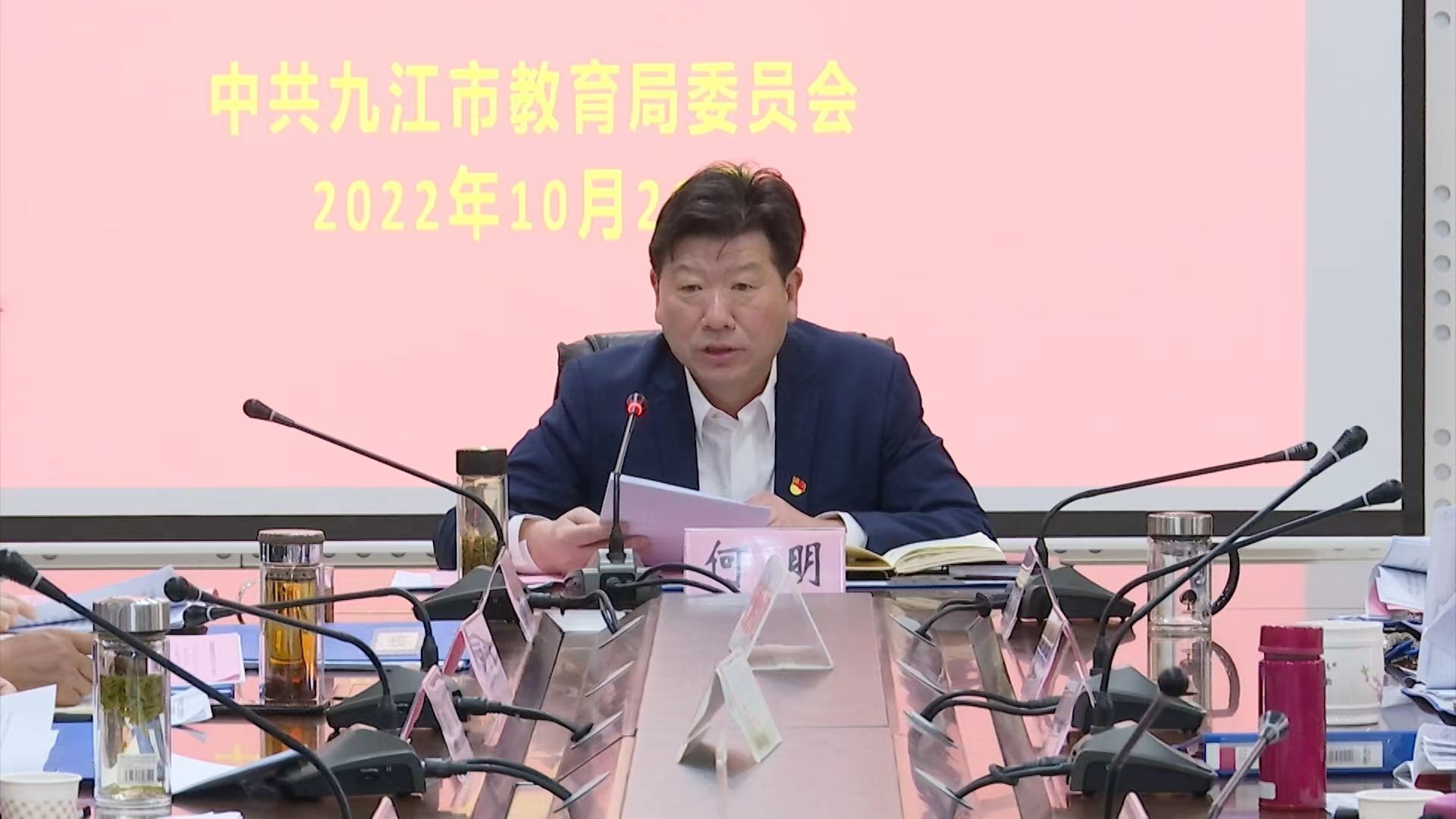 市教育局党委书记、局长何明强调,市直教育系统要把学习宣传贯彻党的二十大精神作为当前和今后一个时期的首要政治任务,把党的二十大提出的新理念、新提法、新论断、新要求、新部署学深悟透、融会贯通、落到实处。要营造氛围,提前研究谋划市直教育系统学习宣传贯彻工作,迅速掀起学习宣传贯彻党的二十大精神热潮。要组成宣讲队深入市直教育系统各级党组织开展党的二十大精神宣讲活动;要组织思政课教师集体备课,把党的二十大精神融入思政课教学;要深入推进习近平新时代中国特色社会主义思想进教材、进课堂、进头脑,利用门户网站、学校“两微一端”、黑板报、电子屏、宣传橱窗等教育媒体阵地,全面、准确、深入宣传党的二十大精神。要学深悟透,准确把握党的二十大精神实质,深刻领悟“五个牢牢把握”的重要要求。要学以致用,把党的二十大精神运用到工作实际,做好教育系统当前和今后一段时间的工作。