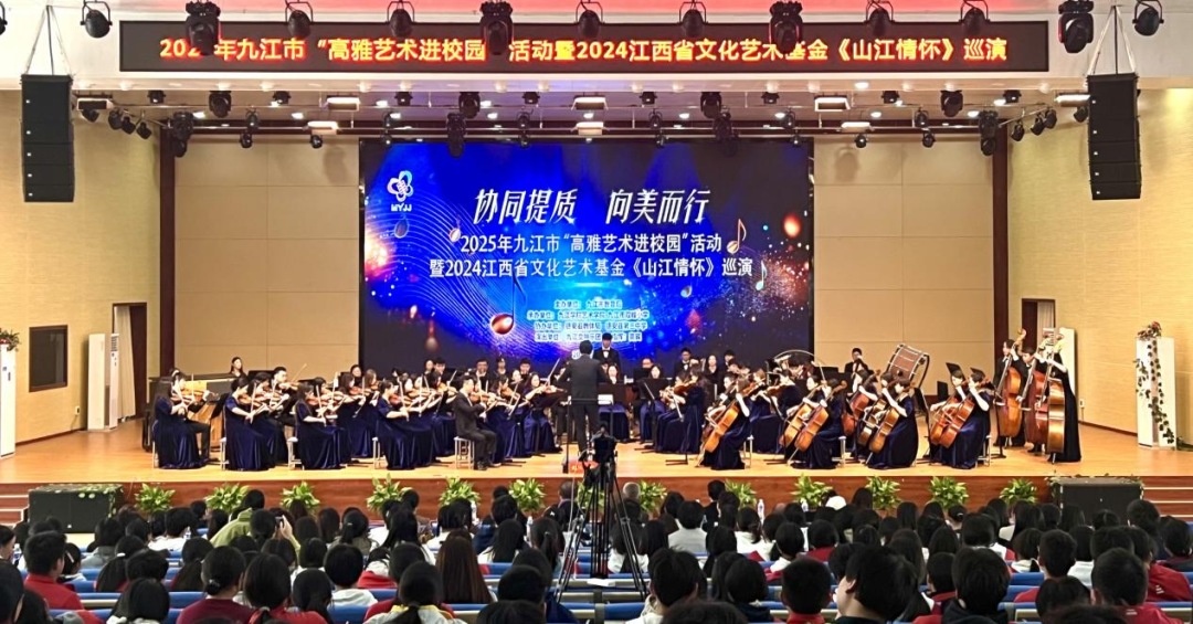 为深入实施美育浸润行动,推动大中小学美育协同发展,2025年10月至11月,九江市教育局组织开展“高雅艺术进校园”系列活动。本次活动以“协同提质,向美而行”为主题,由九江学院艺术学院具体承办,九江交响乐团进行现场演出。
