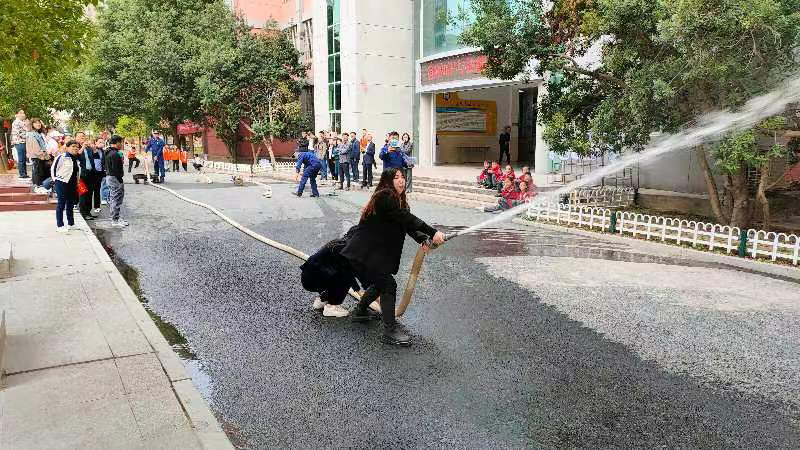 在教师演练过程中,消防大队的宣教人员一面拍摄演练视频,一面对演练教师进行有针对性的指导。据了解,此次演练合格的教师将由消防救援大队颁发消防知识与技能培训合格证书。