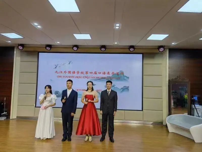10月28日,九江外国语学校庾亮校区举办第四届英语口语展示活动。初二年级学生参赛,全体同学以线上的形式观看比赛直播。