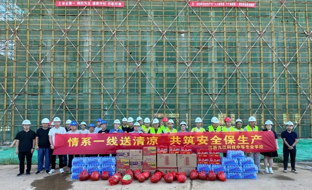 九江科技中专新校区项目位于八里湖新区江州大道以南,总占地面积约305.36亩,预计明年6月竣工验收。近日,九江科技中专校领导一行前往新校区建设工地开展“情系一线送清凉,共筑安全保生产”慰问活动。