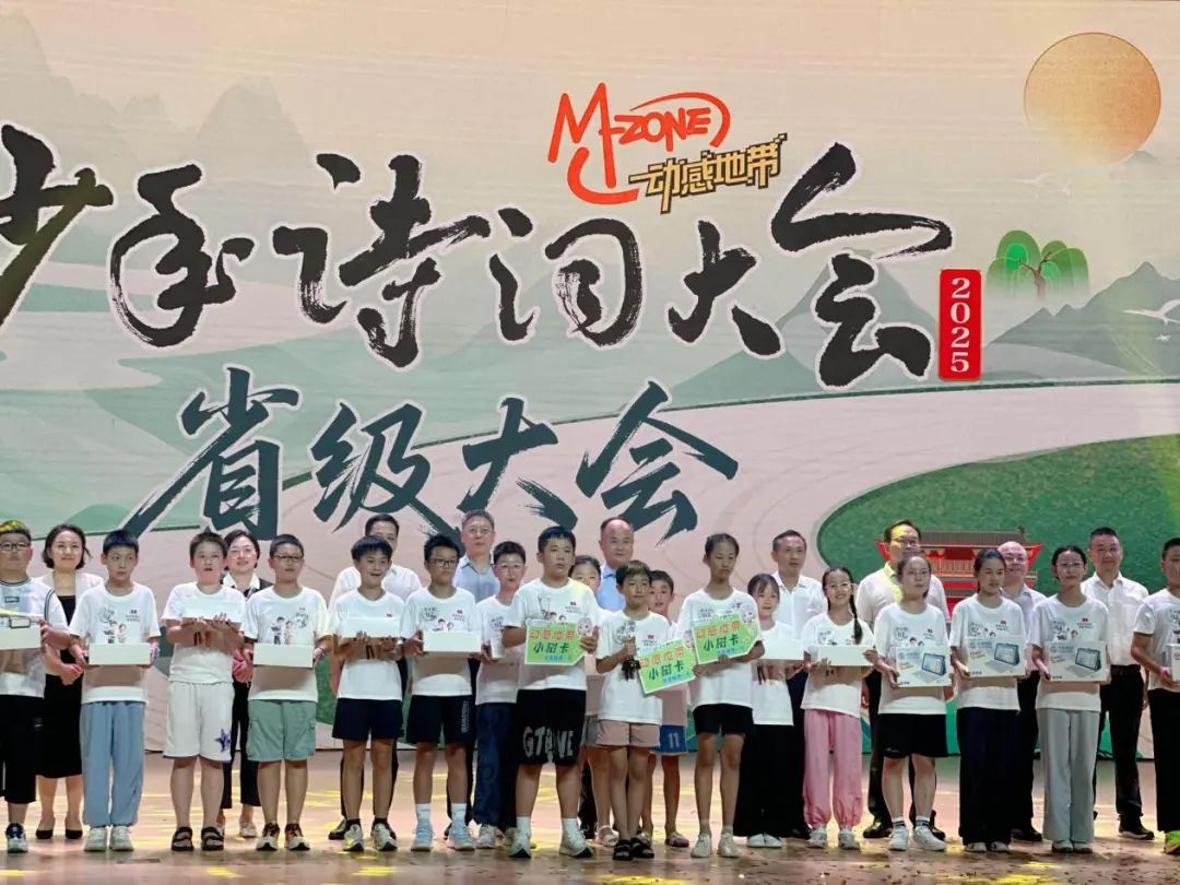 2025江西少年诗词大会自5月启动以来,互动平台报名超过3万人,线下海选活动累计超过3000名选手参与现场竞技。经过层层选拔,最终四大赛区近千名优秀选手晋级省赛。在这项高规格的赛事中,双峰小学诗词校队表现优异,多人晋级最终的百人团战。特别是李含章同学沉稳大气、底蕴深厚,在诗词答题、诗词接龙、飞花令等环节从容不迫,佳句频出,最终力压群雄,摘得桂冠,展现出双峰学子的卓越风采。