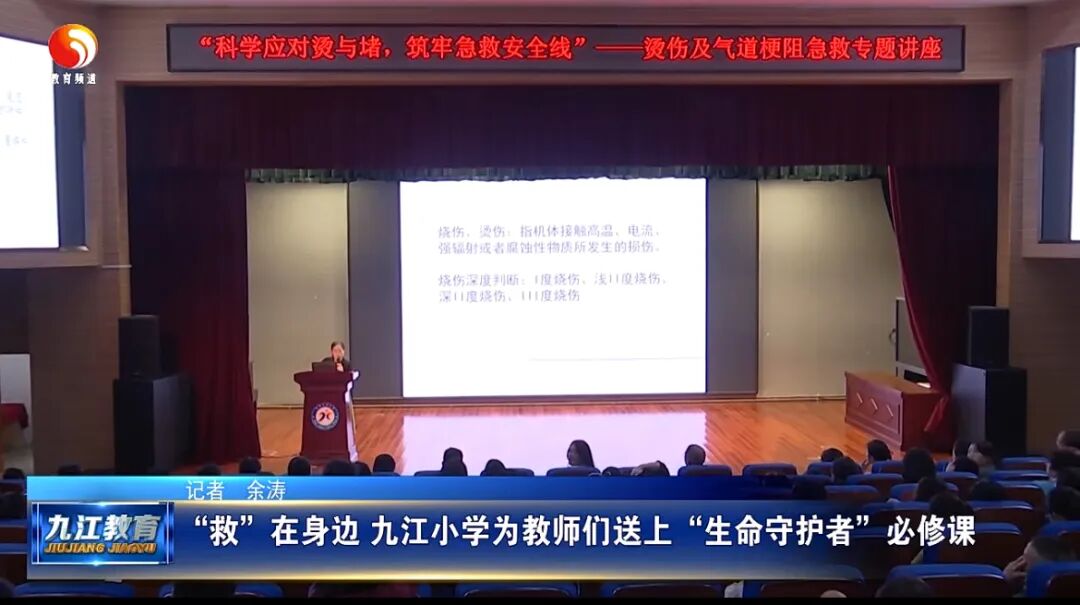 “老师掌握急救技能能增强学生的安全感,还可通过日常教学渗透急救常识,成为学生健康成长的安全守护者。”九江小学体卫艺工作负责人尤好好说道。