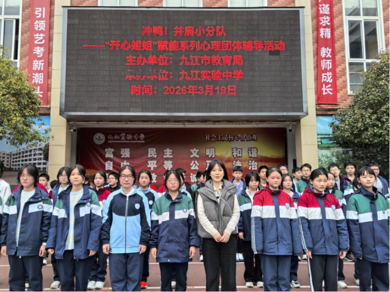 为帮助学生缓解心理压力,增强班级向心力,近日,九江实验中学开展主题为“冲鸭!并肩小分队”开心姐姐赋能系列心理团体辅导活动。本次活动由学校专职心理教师组织开展,旨在引导学生在体验中感悟成长,在合作中凝聚力量,以积极向上的心态迎接学习生活的各项挑战。