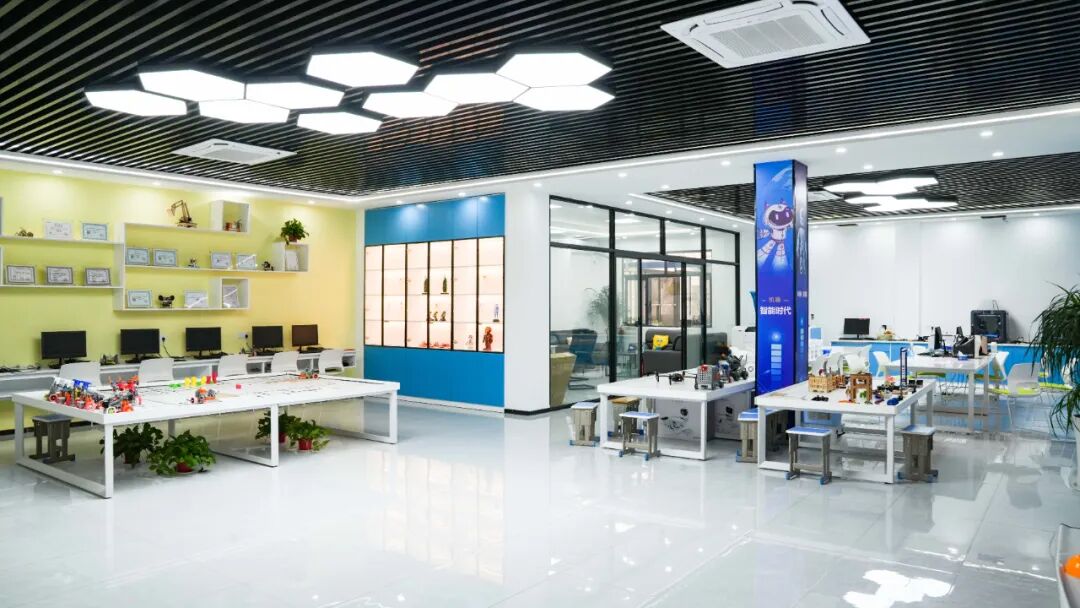 创客机器人实验室下设“三室一馆”。“三室”为科技创新工作室、智能机器人和无人机工作室、程序设计工作室;“一馆”为科技体验馆,它们各自承担着不同的任务。