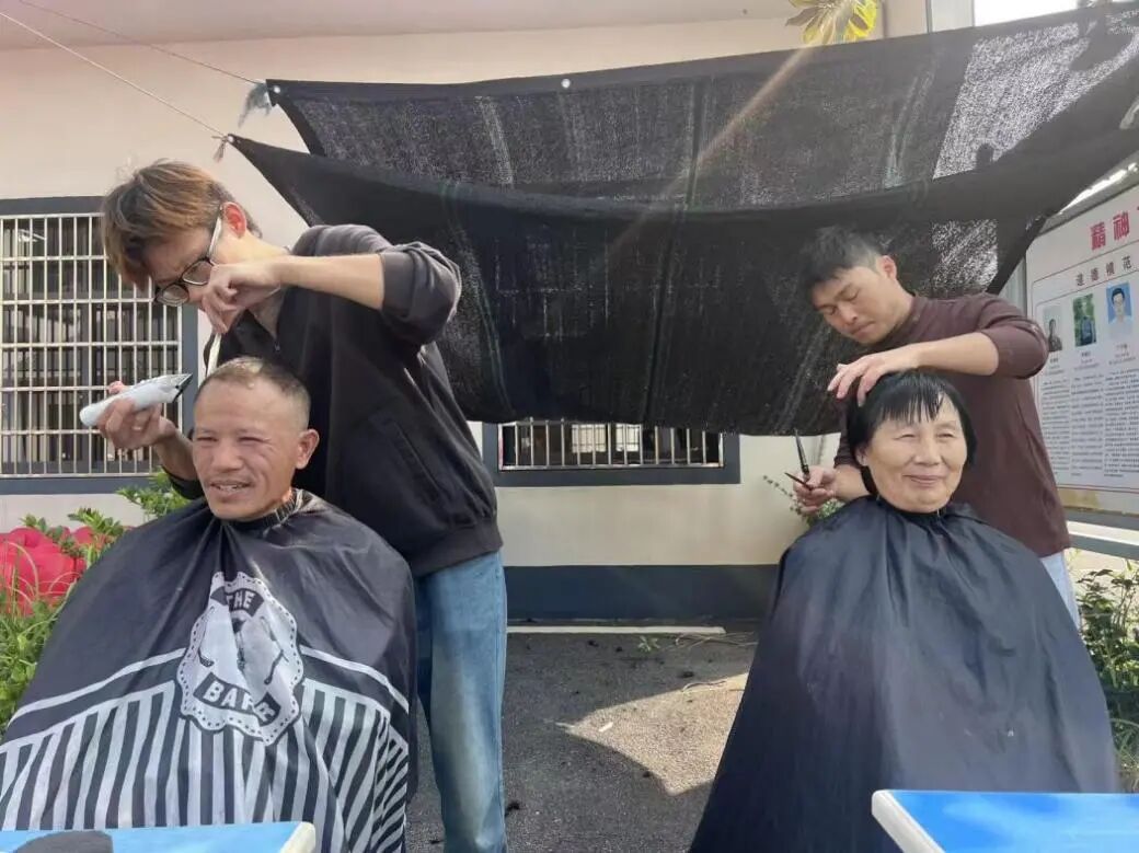 活动现场设置了多个服务点位,其中免费理发区最受老人们欢迎。志愿者们早早在村委会门前搭起临时理发点,理发工具摆放得整整齐齐。对于行动不便的老人,志愿者们还主动上门服务。理发过程中,理发师细致修剪每一缕头发,剪完后还贴心地帮老人梳理整齐、拂去碎发,老人们的脸上满是开心的笑容。