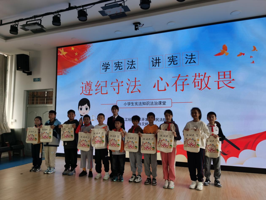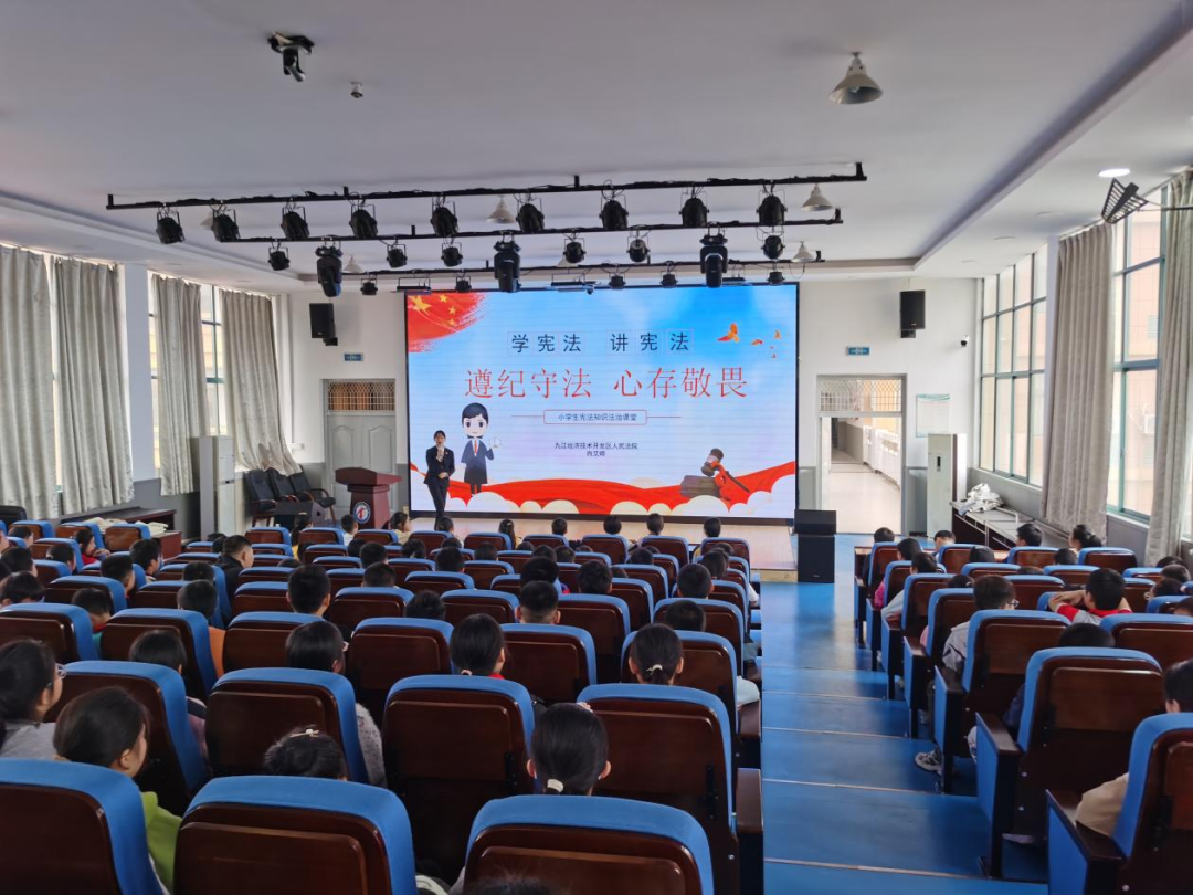 法立于上,教弘于下。为增强青少年法治观念,护航青少年健康成长,近日,九江经开区法院干警走进学洲小学,开展了以“ 学宪法 讲宪法 遵纪守法 心存敬畏”为主题的普法宣传活动,让在场的师生们接受了一场法治精神洗礼。
