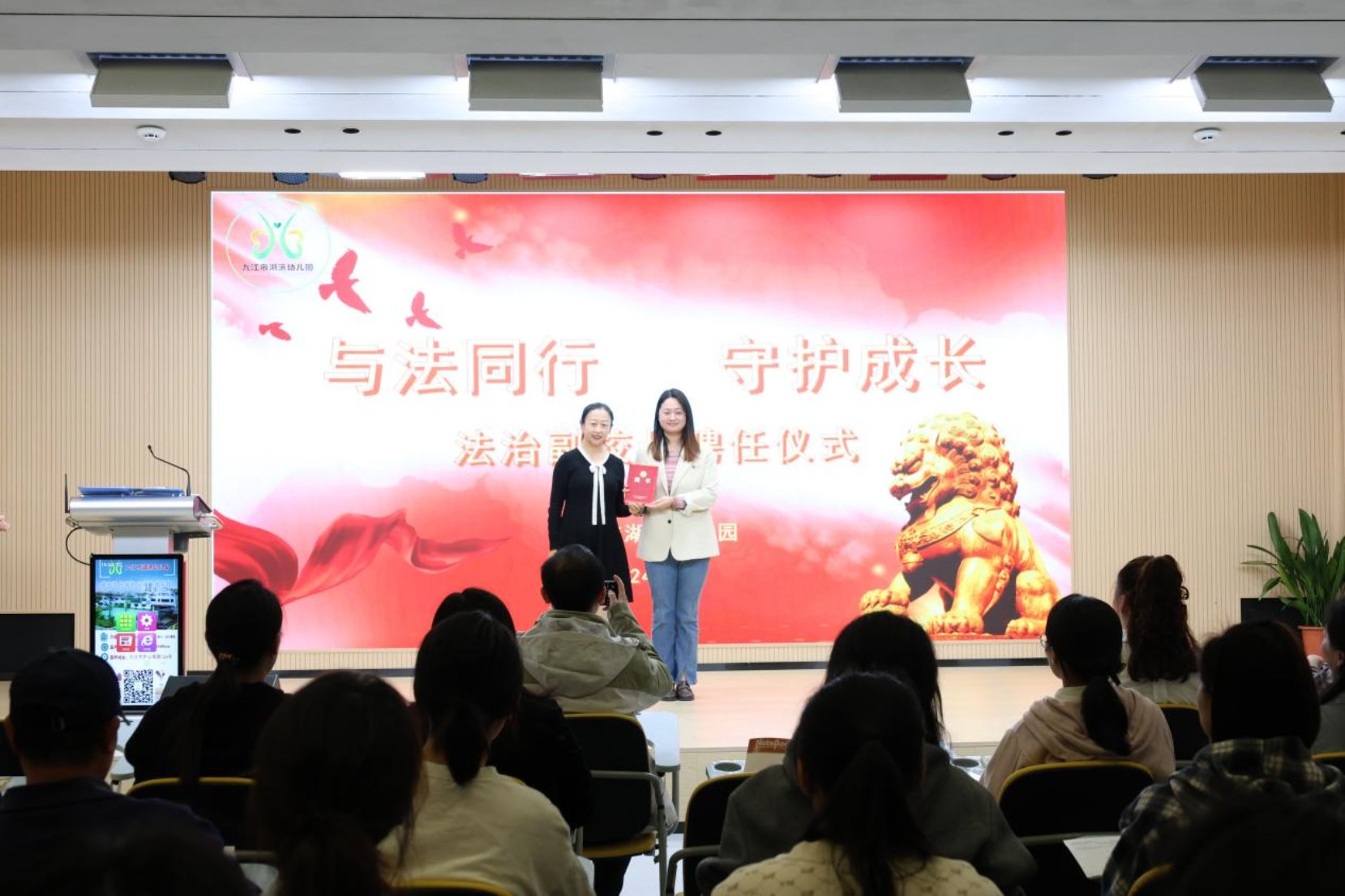 法治引领,铸就师魂。幼儿园聘请九江市司法局行政复议审理科李娟为法治副校长,党支部书记、园长周乐敏为她颁发聘书并衷心感谢其参与本园法治教育工作。李娟表示,将认真履行法治副校长的职责,积极协助幼儿园开展法治宣传教育,为幼儿园法治教育工作贡献专业力量。