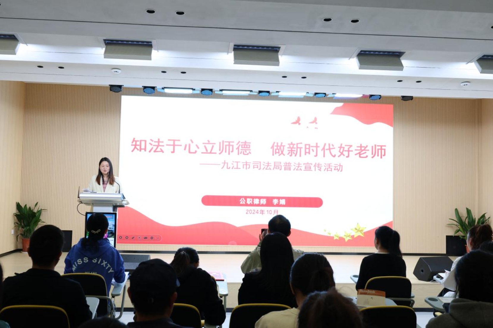 为进一步深化师德师风建设,落实立德树人根本任务,切实提升全体教职工的法治意识和法治素养,营造安定和谐的育人环境,2024年10月24日,九江市湖滨幼儿园聘请法治副校长并开展以“知法于心立师德,做新时代好老师”为主题的师德师风法治素养专题培训。