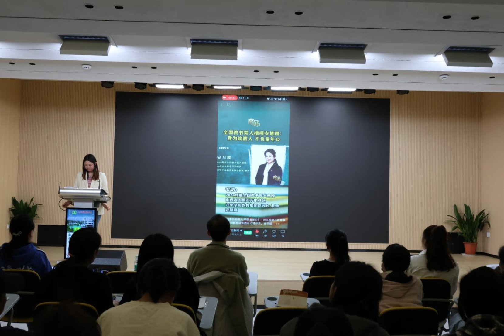 最后,李娟带领全体教职工学习师德榜样——全国教书育人楷模安慧霞的先进事迹。叩问初心,坚守初心,向榜样学习,用实际行动去诠释一名幼教人的责任与担当,争做新时代好老师。