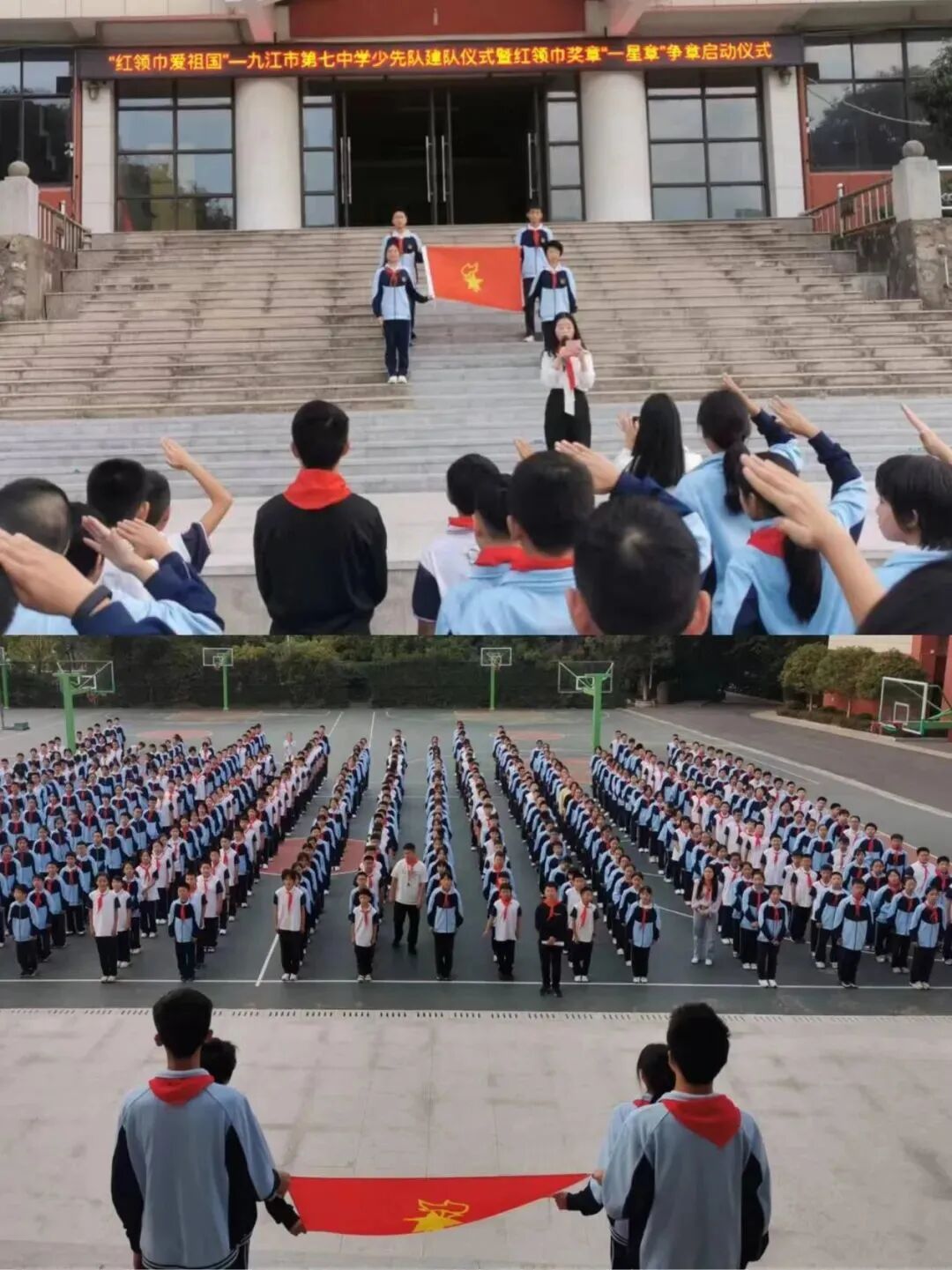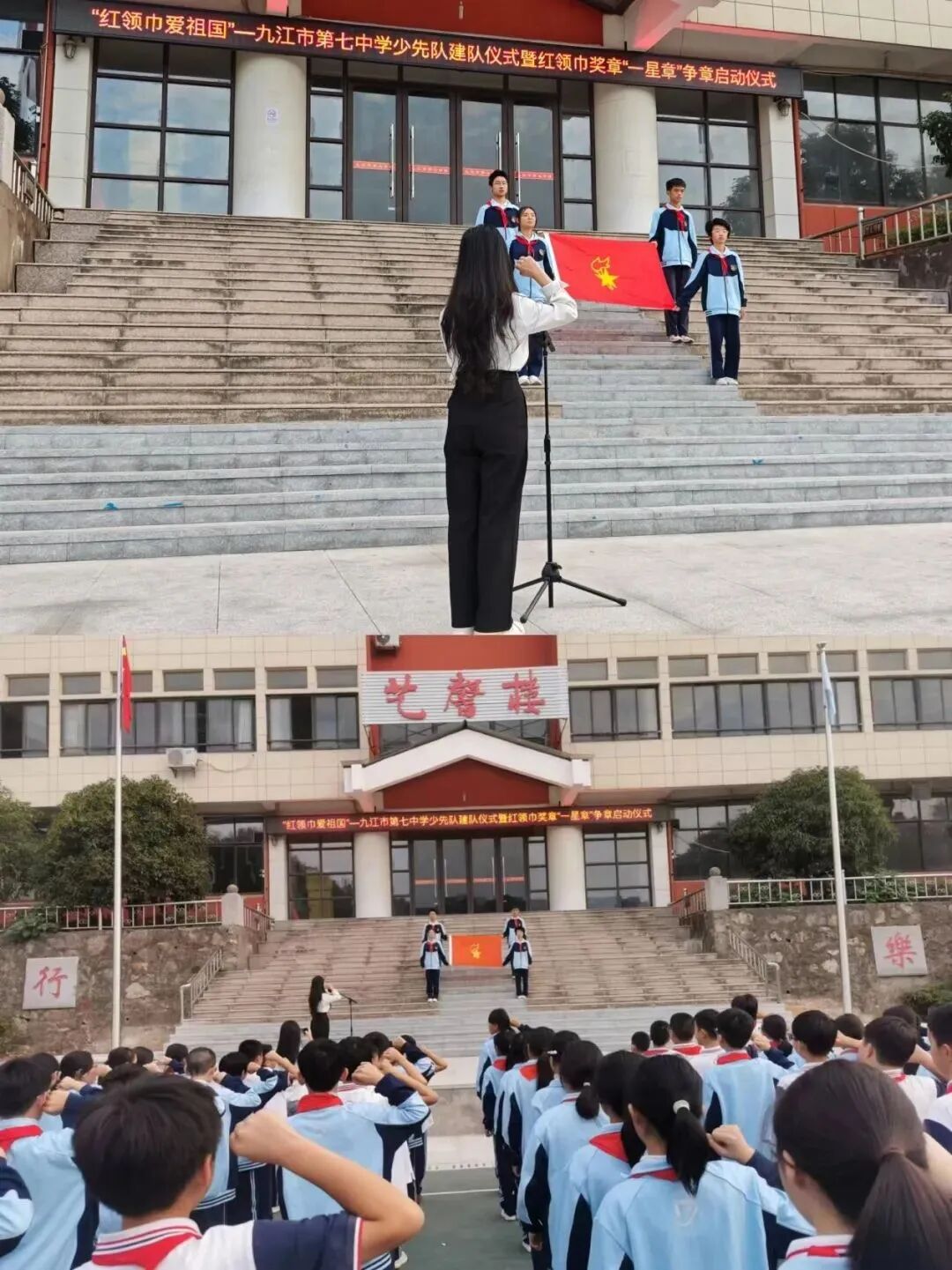 为庆祝中国少年先锋队建队75周年,提升少先队员的组织归属感和光荣感,10月12日,九江市第七中学举行了以“红领巾爱祖国”为主题的七年级少先队建队仪式暨红领巾奖章“一星章”争章启动仪式。