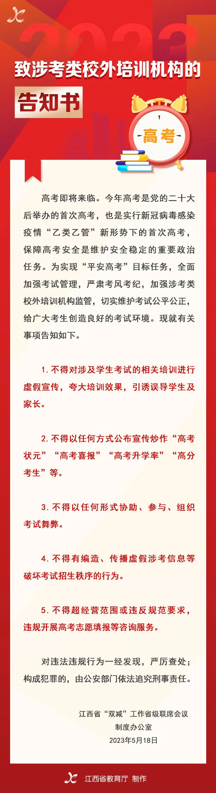 致涉考类校外培训机构的告知书