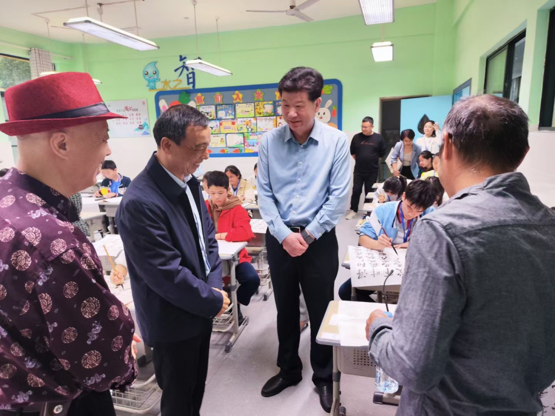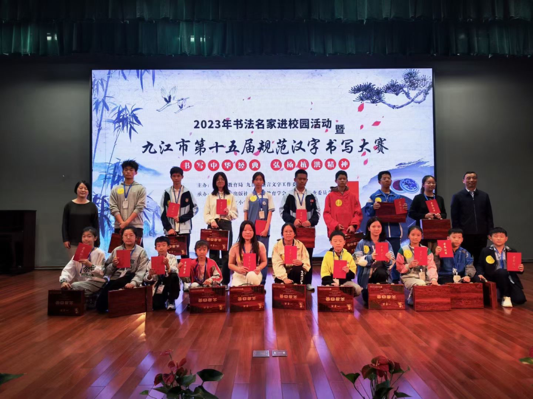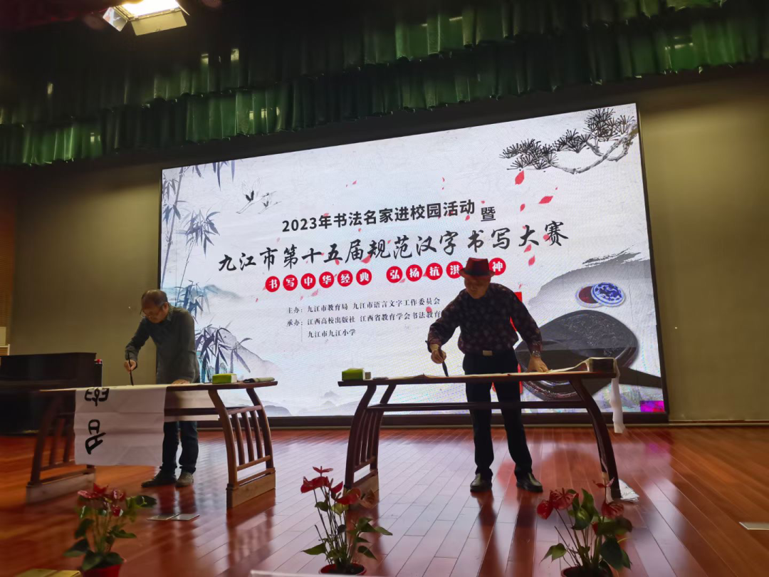 11月4日上午,由九江市教育局、九江市语委主办的“2023年书法名家进校园暨九江市第十五届规范汉字书写大赛现场比赛”圆满落幕。省教育厅语言文字工作与教材处副处长吴学军亲临现场指导,市教育局党委书记、局长何明,党委委员、副局长曾瑜华观摩现场比赛。