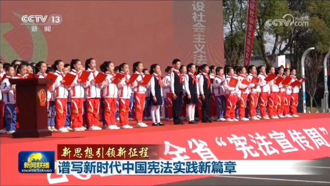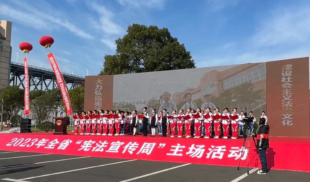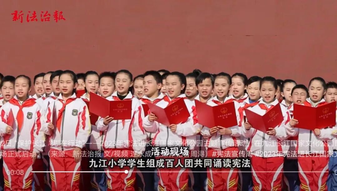 12月2日上午,保护长江 “宪”在行动——江西省2023年宪法进长江国家文化公园主题宣传活动在九江琵琶亭举行,九江小学100名少先队员在活动现场进行《宪法之光》诵读。