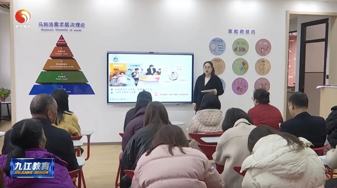九江小学副校长彭家平介绍道:“九江小学严格落实九江市教育局‘开学第一讲·家校共话健康成长’主题活动要求,牢固树立健康第一育人理念,分学段、分主题常态化开展“周末家庭教育润心讲堂”。通过系统化、精准化家校共育举措,全方位护航学生身心健康与全面发展。活动成效显著,获得家长广泛认同与好评。”