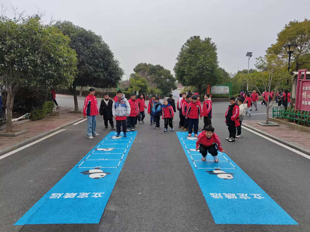 每逢课间,越来越多的孩子来到操场,通过有序地开展走、跑、跳、投等多种形式丰富课间生活。孩子们在体验彩绘游戏快乐的同时,不仅能学习了解许多的知识,比如:体验“长征之路”的艰辛历程;了解“十二生肖、二十四节气”的传统文化;巩固“汉语拼音字母表、声母韵母表”;掌握“防溺水、防欺凌安全知识”等,更能培养他们的团队协作能力和规则意识。真可谓“玩中学,乐中学”!