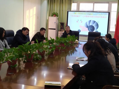 1月15日下午,市七中“狂奔的蜗牛”教师发展社团成员见面会,在艺馨楼会议室召开,该校校长李青到会致辞。