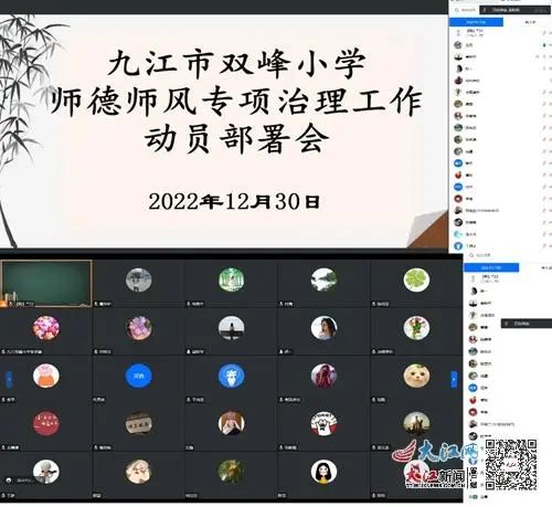 12月30日,九江市双峰小学庾亮校区和濂溪校区分别召开线上师德师风专项治理工作会。