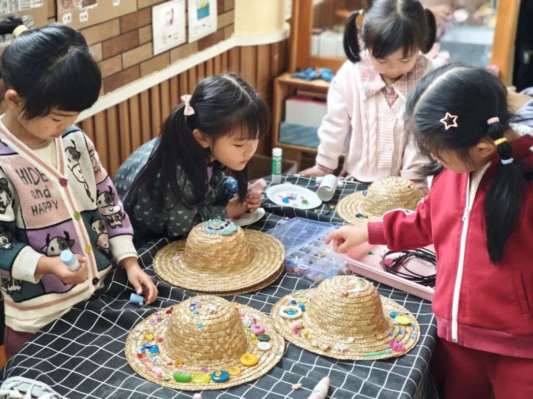 瞧!活动伊始,孩子们走出教室,在幼儿园的各个游戏区域间穿梭、忙碌、嬉戏着。他们或在美工区专心制作草帽,或在建构区用心搭建房子,或在娃娃家悉心照顾宝宝,或在小厨房精心烹饪早餐,或在快递站潜心收发快递……孩子们玩得不亦乐乎!每一块游戏场地皆为孩子们带来了无尽的探索契机。