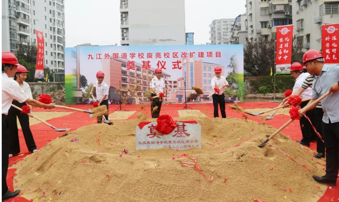 9月14日,九江外国语学校庾亮校区改扩建项目举行奠基仪式。市教育局二级调研员胡汝庆、相关单位负责人及学校全体班子成员出席。