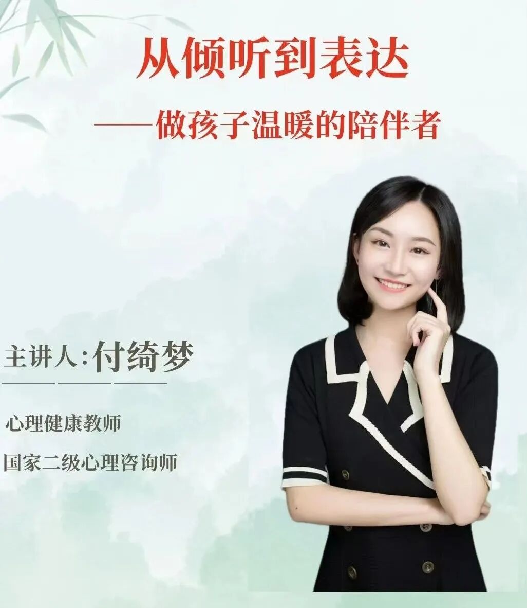 线上讲坛由国家二级心理咨询师、九江市长虹小学专职心理健康教师付绮梦主讲。讲坛主题是“从倾听到表达——做孩子温暖的陪伴者”。在亲子沟通中,学会倾听是良性沟通的基础。讲座中,付绮梦老师建议家长接纳理解孩子的情绪,与孩子共情;用肢体语言给孩子积极的反馈;正确理解孩子的问题,引导孩子表达。此外,她还分享了有利于亲子间沟通的技巧。